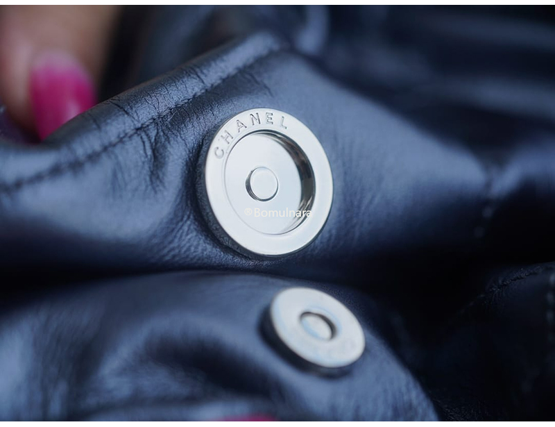 -레더와 역은 메탈 체인과 퀄팅 패턴