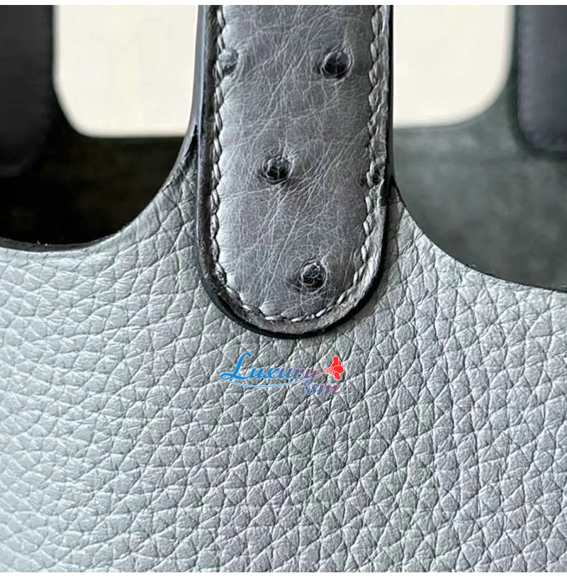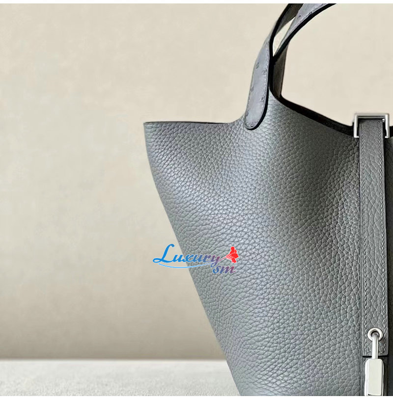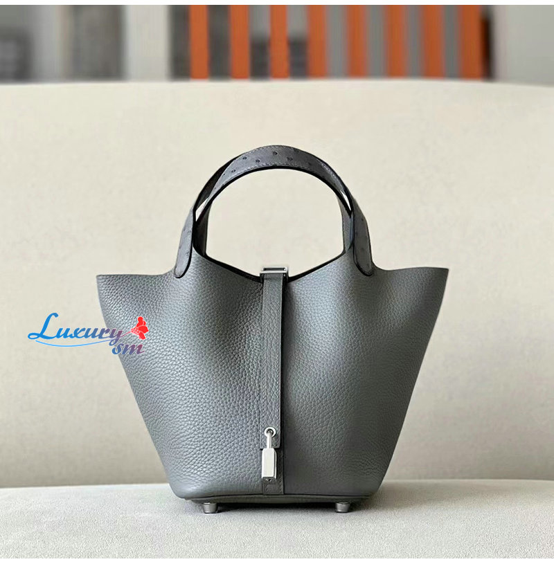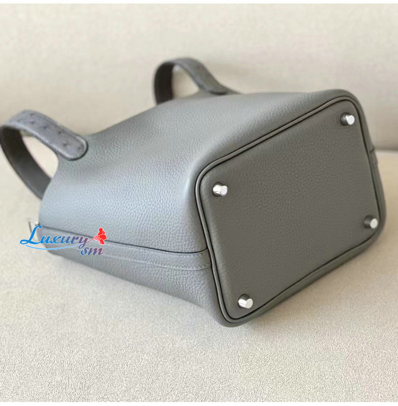 [스페셜오더]HERMES-H056289 에르메스 그레이 끌레망스 가죽 타조 가죽 핸들 은장 피코탄 Picotin Lock 18 백