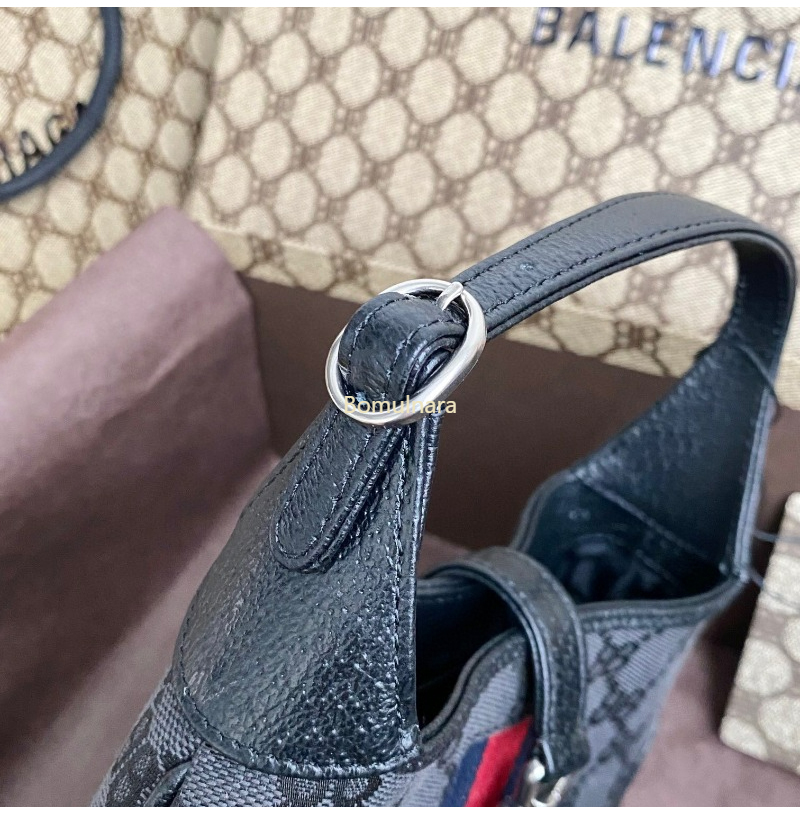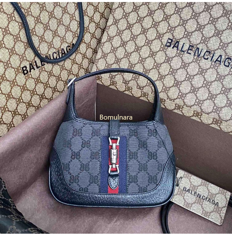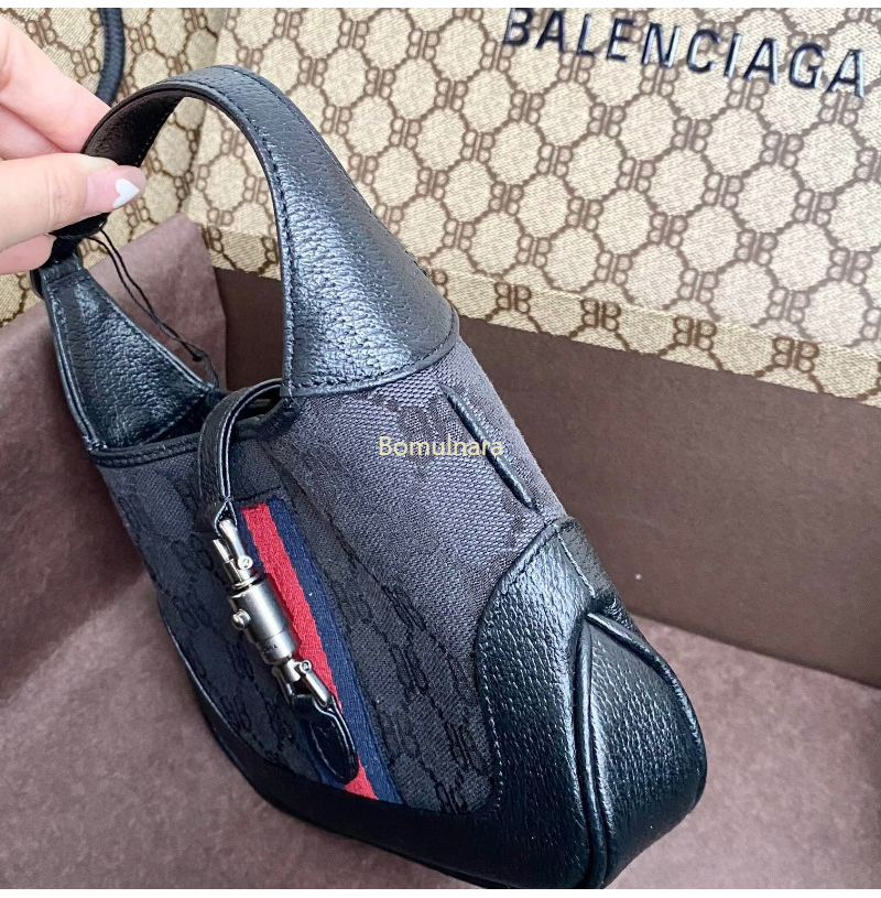 GUCCI-680118 구찌 × 발렌시아가 HACKER 블랙 BB 캔버스 재키 1961 스몰 호보백