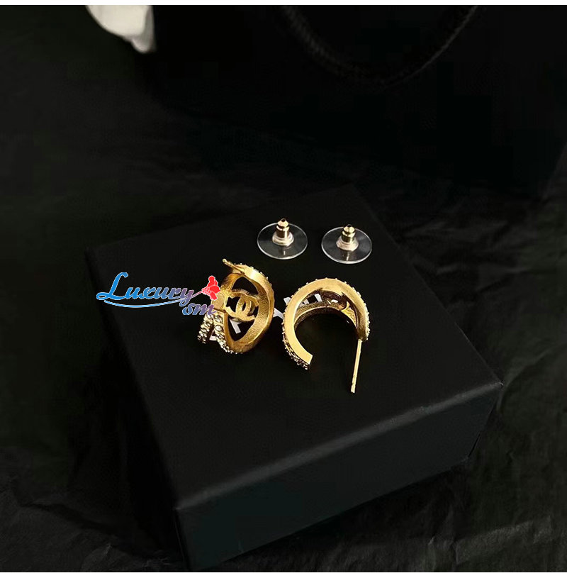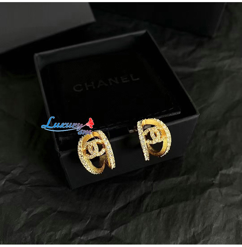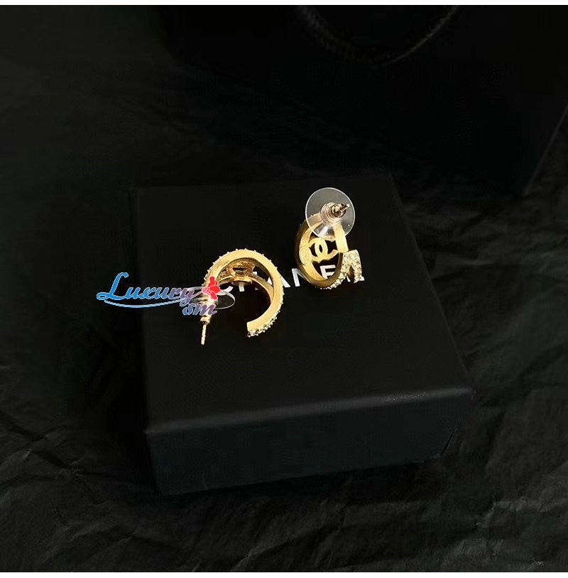 CHANEL-7052 샤넬 골드 크리스탈 장식 귀걸이