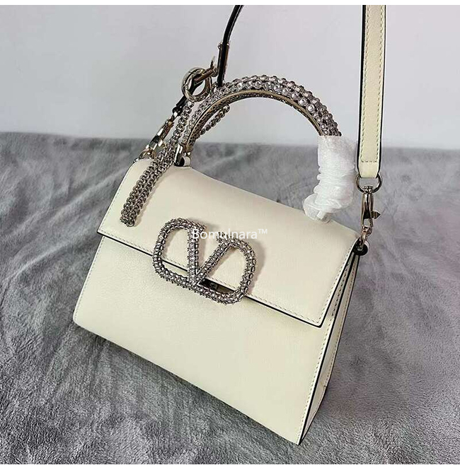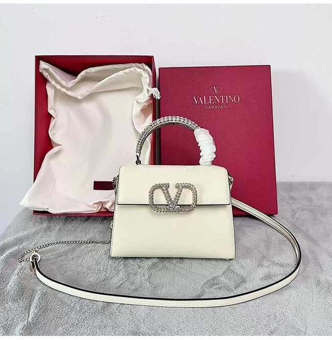 [스페셜오더]VALENTINO-1W2B0F 발렌티노 아이보리 보석 손잡이 브이슬링 스몰 핸드백