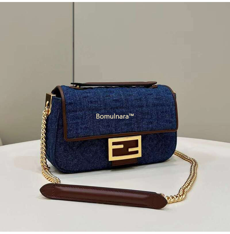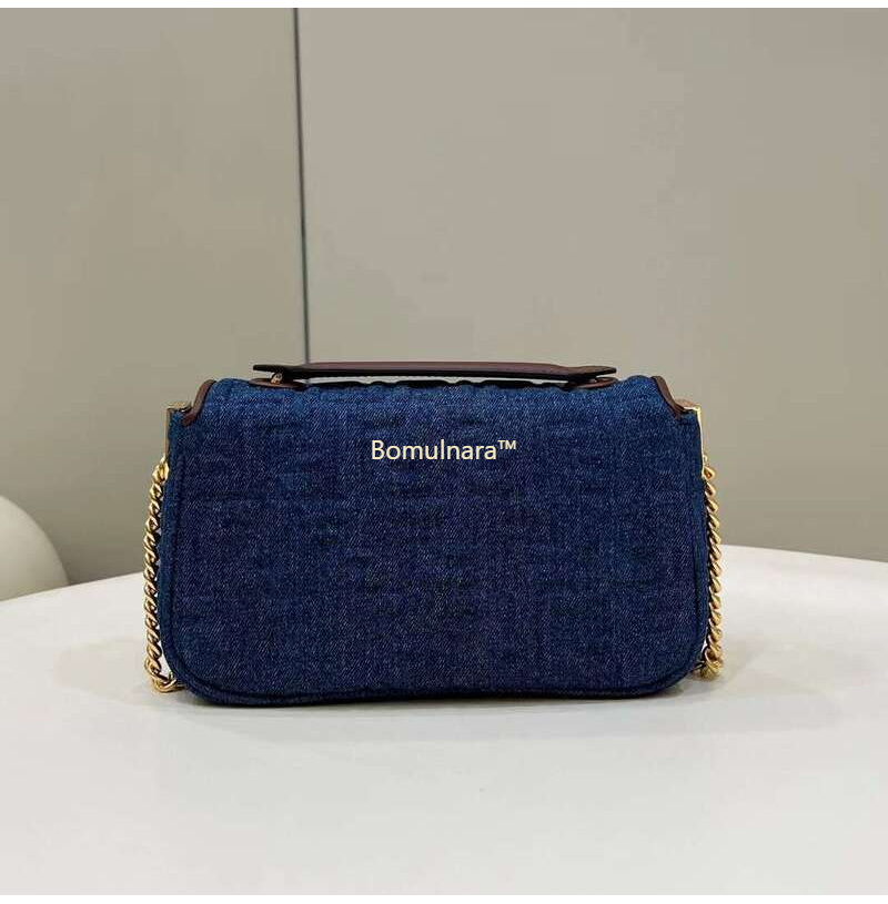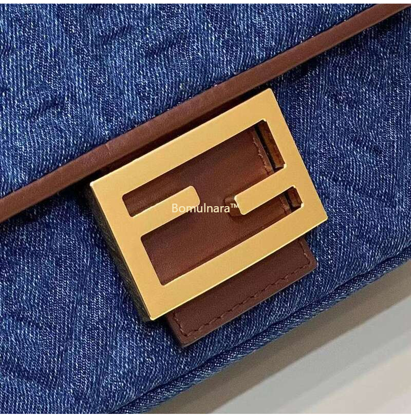 [스페셜오더]FENDI-8BR793 펜디 다크 블루 데님 미디 체인 바게트 백 24CM