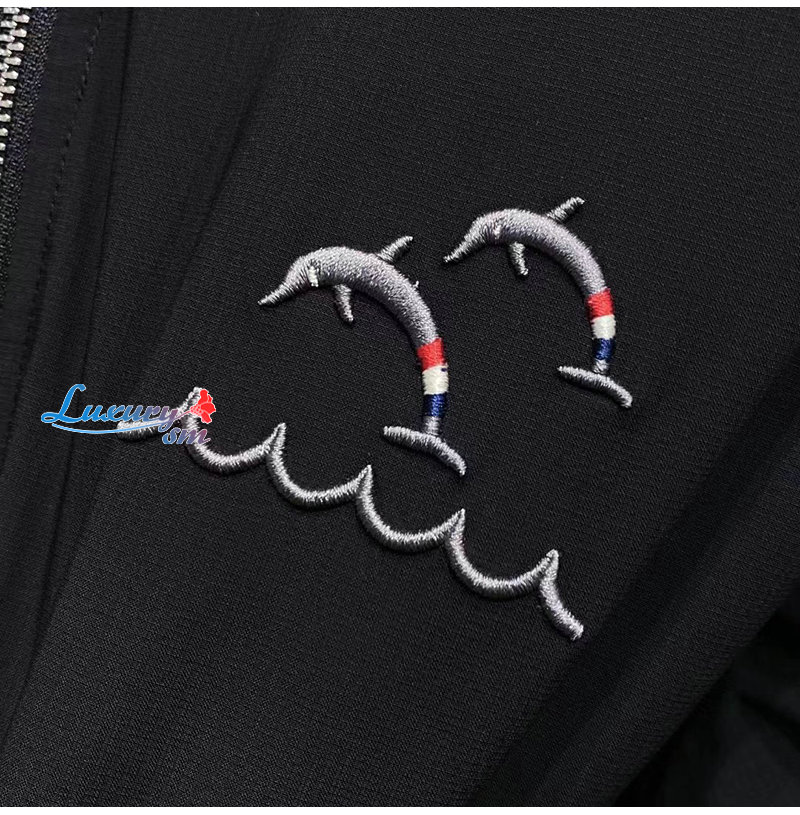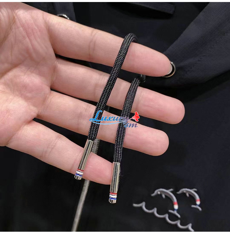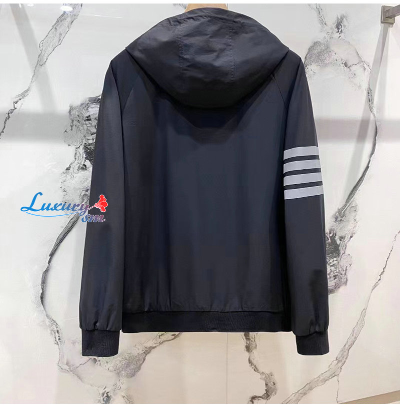 THOM BROWNE-02144 톰 브라운 블랙 스트라이프 장식 바람막이 재킷 남성용