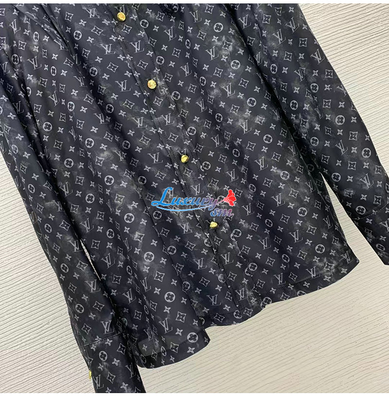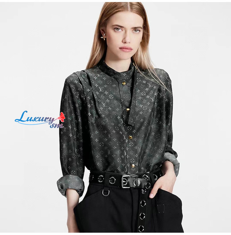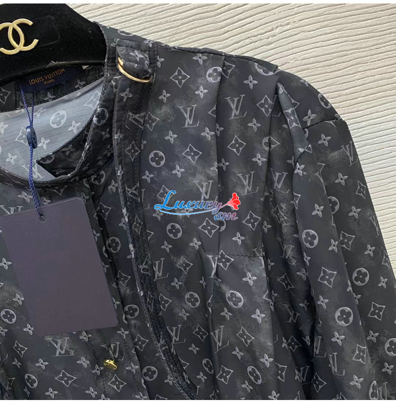 LOUIS VUITTON-1AAZ35 루이비통 블랙 플리츠 숄더 모노그램 클라우드 셔츠 여성용