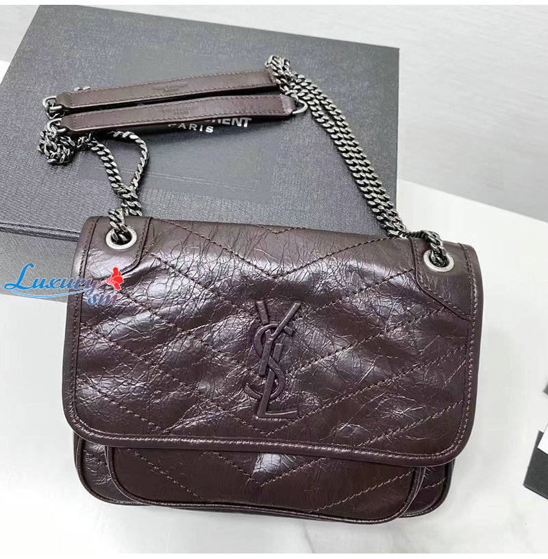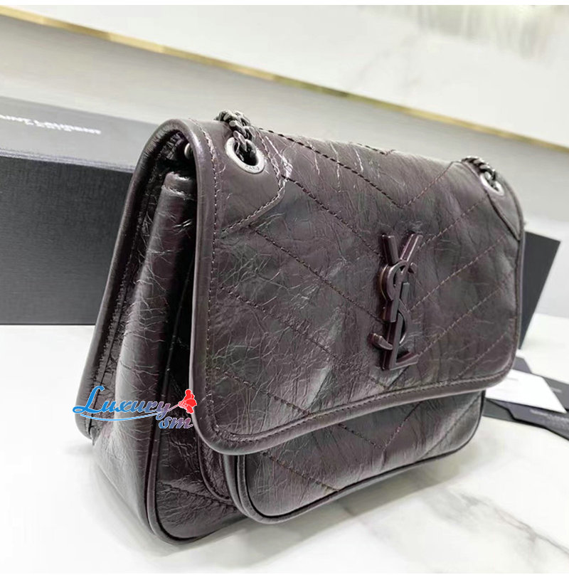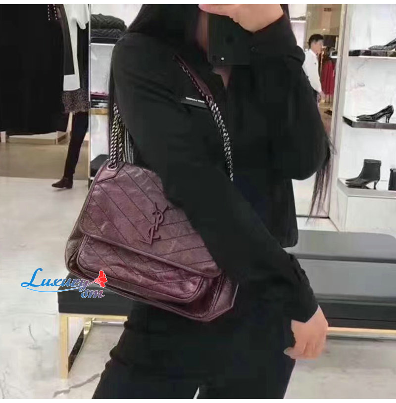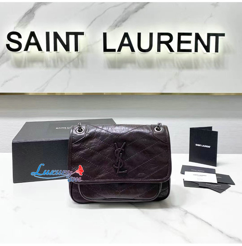 [스페셜오더]SAINT LAURENT-633160 생 로랑 버건디 크링클드 빈티지 가죽 NIKI 베이비백