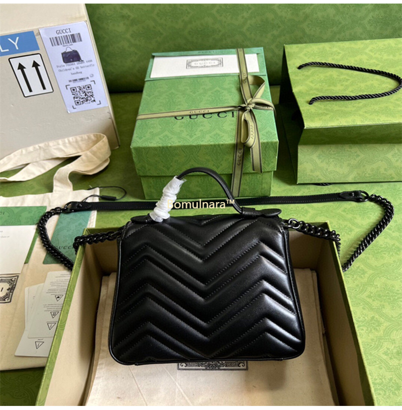 [스페셜오더]GUCCI-702563 1000 구찌 블랙 GG 마몽 마틀라세 쉐브론 미니 탑 핸들백