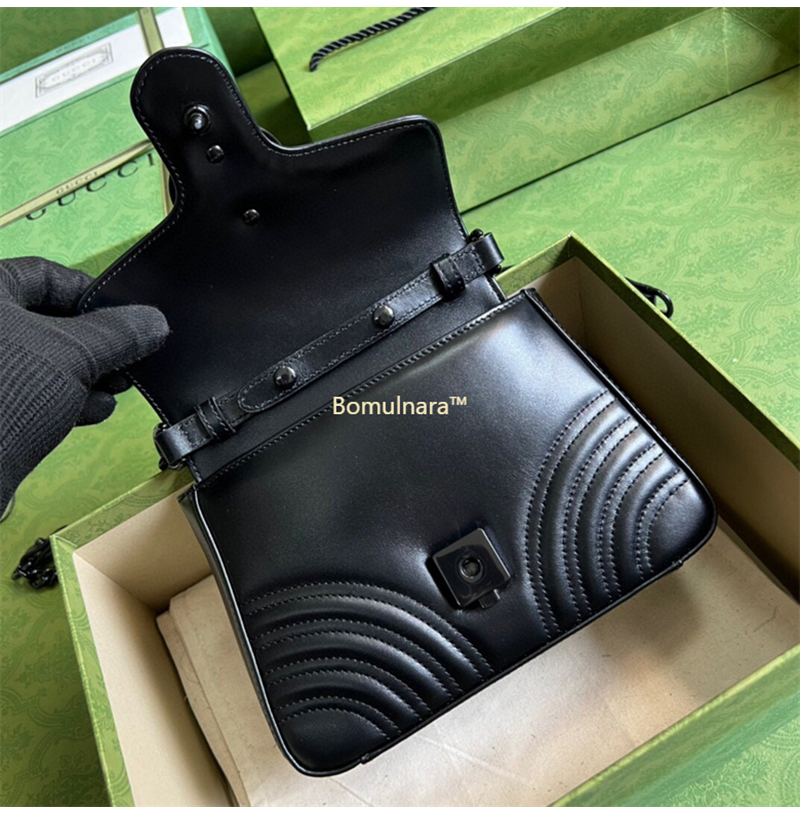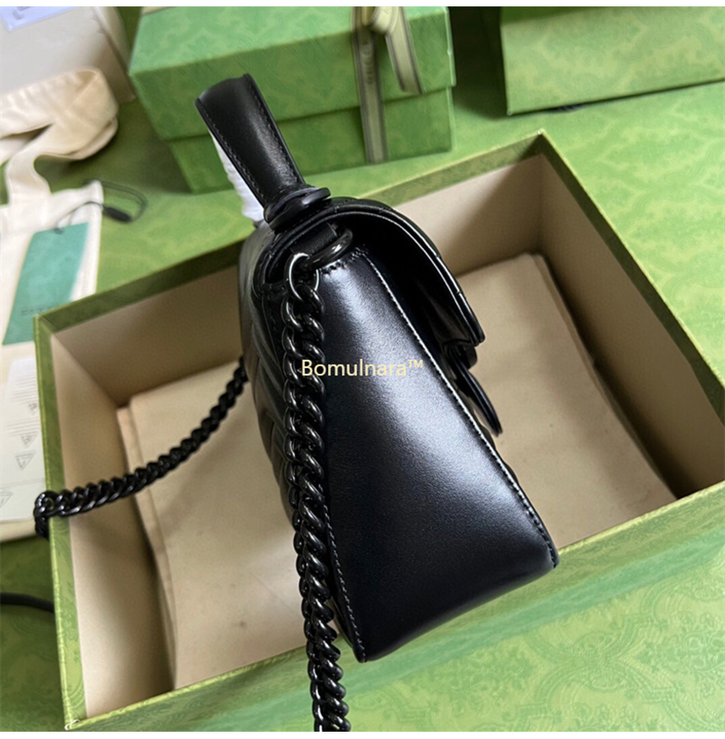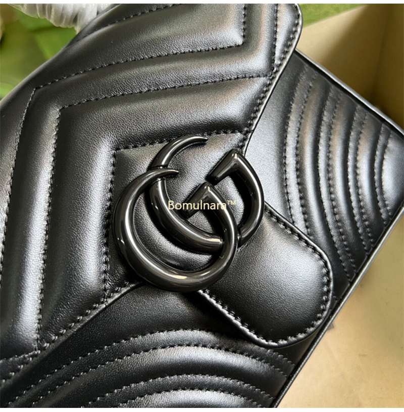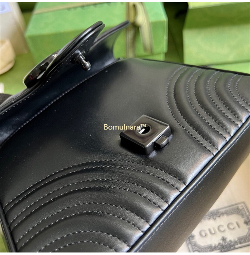 [스페셜오더]GUCCI-583571 8277 구찌 GG 마몽 블랙 사선형 마틀라세 가죽 미니 탑 핸들백