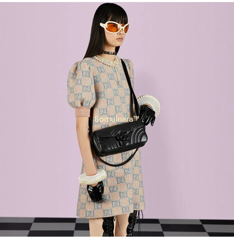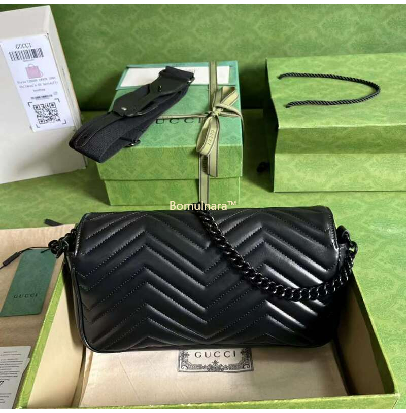 [스페셜오더]GUCCI-734814 1000 구찌 블랙 GG 마몽 마틀라세 쉐브론 숄더백