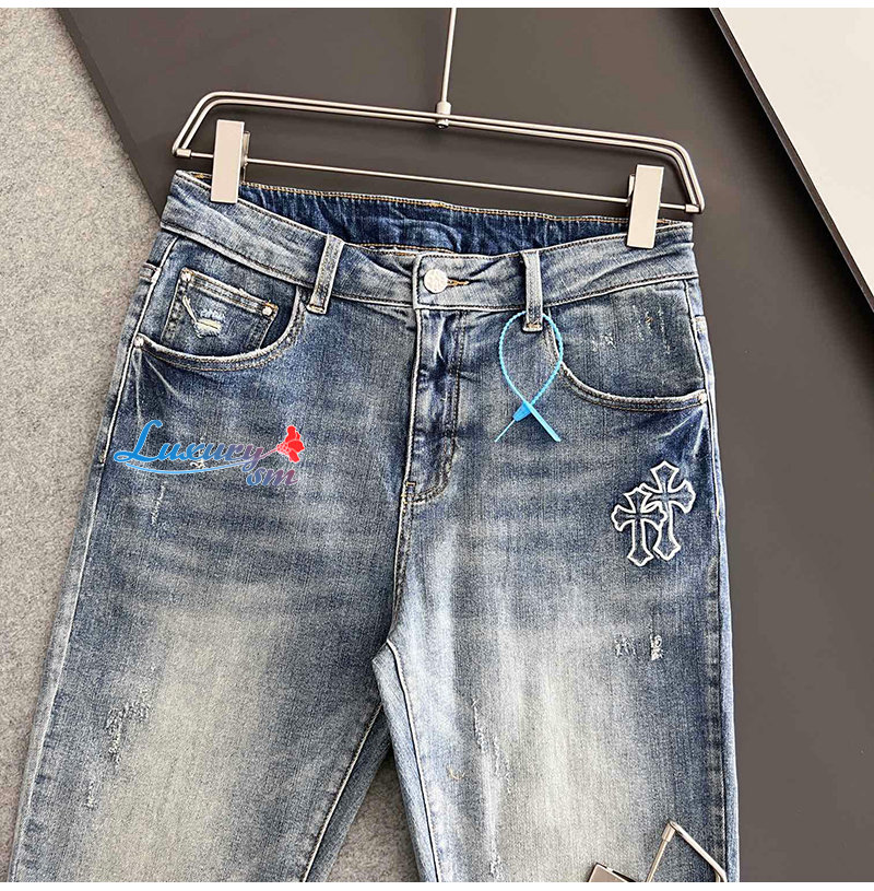 CHROMEHEARTS-03033 크롬하츠 블루 십자가 장식 청바지 남성용