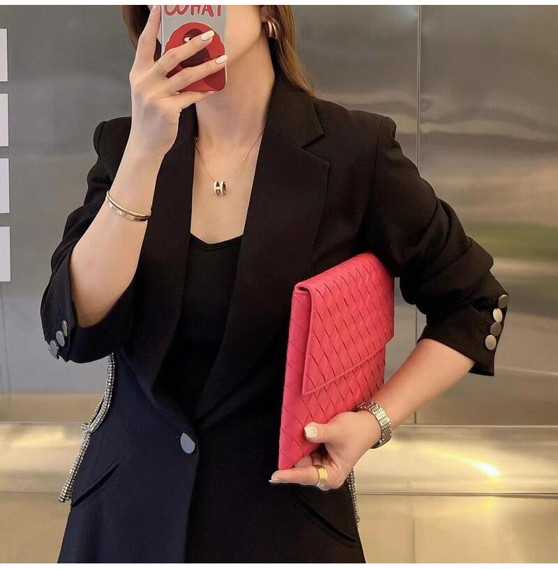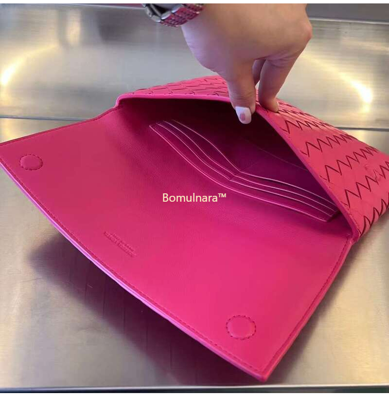 [스페셜오더]BOTTEGA VENETA-667138 보테가 베네타 다크 핑크 인트레치아토 미디엄 플랩 파우치 26CM