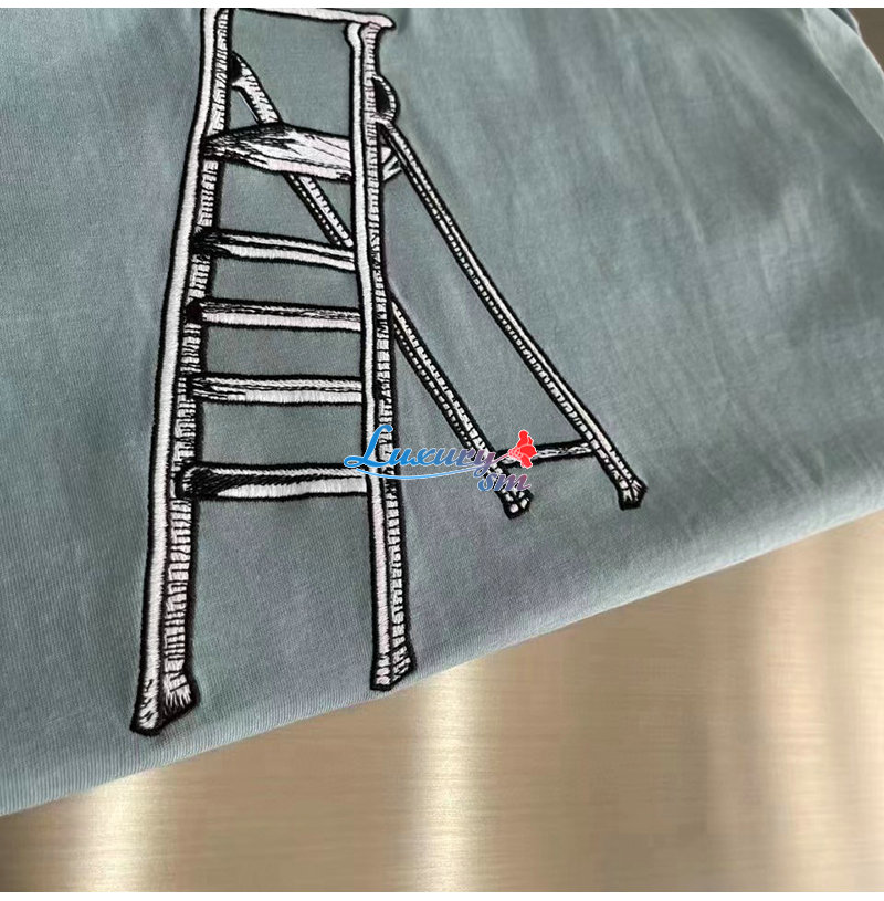 하는 다양한 자수가 장식된 캐주얼한 티셔츠.