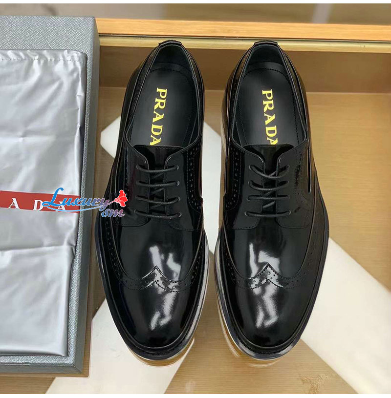 PRADA-03093 프라다 블랙 블러시드 가죽 레이스업 남성용