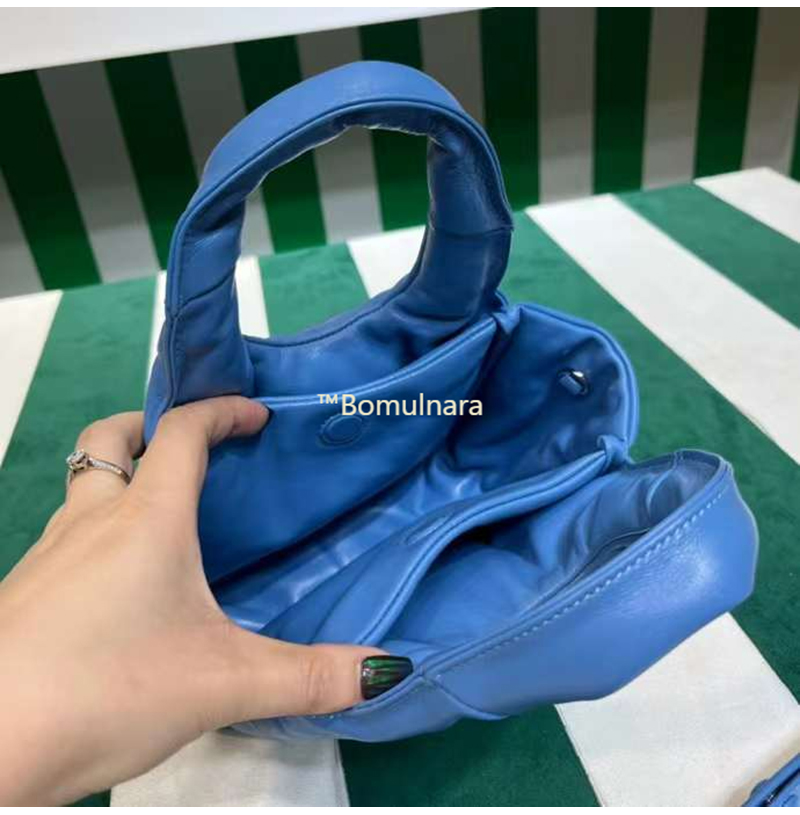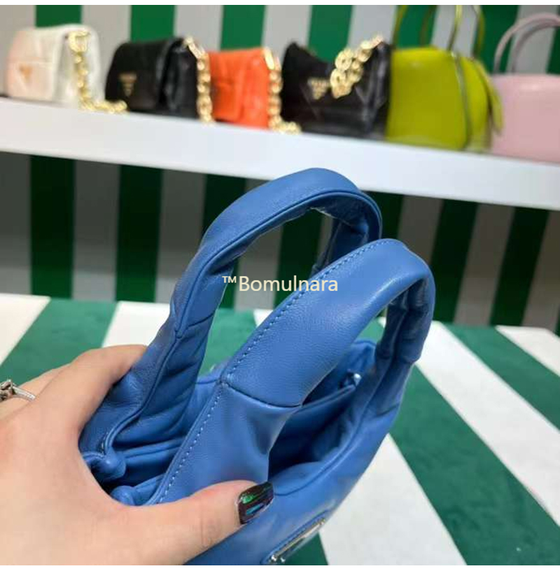 [스페셜오더]PRADA-1BA359 프라다 블루 소프트 패딩 나파 가죽 스몰 핸드백