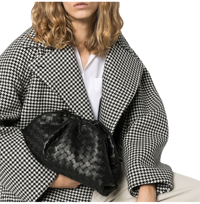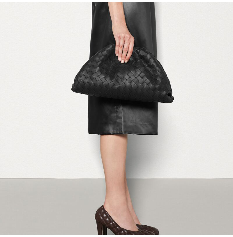 가죽 소재를 인트레치아토 위빙으로 완성한 클러치