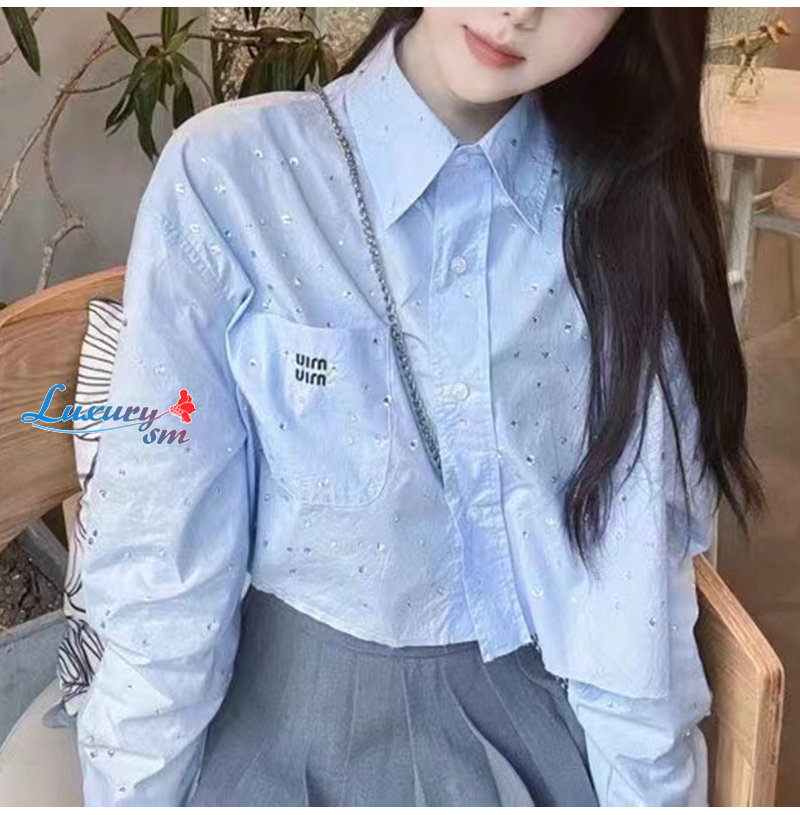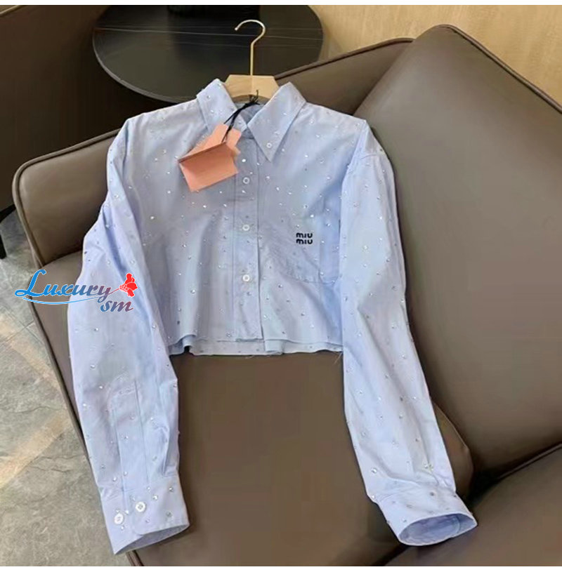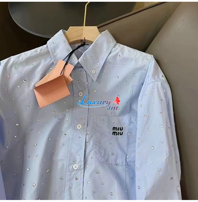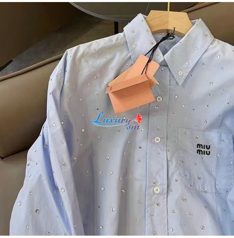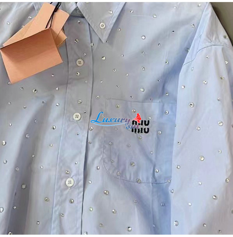 MIUMIU-03183 미우미우 블루 스터드 장식 셔츠 여성용