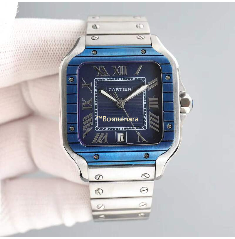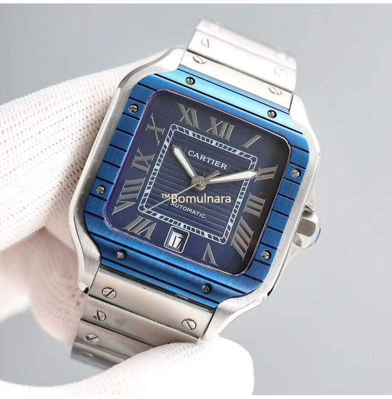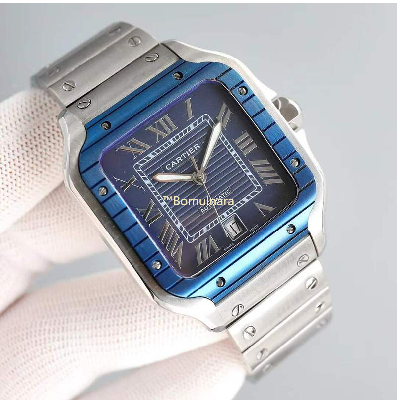 [스페셜오더][AF Factory]Cartier-까르띠에 산토스 드 까르띠에 large PVD 베젤 블루 스트라이프 다이얼 39.8mm
