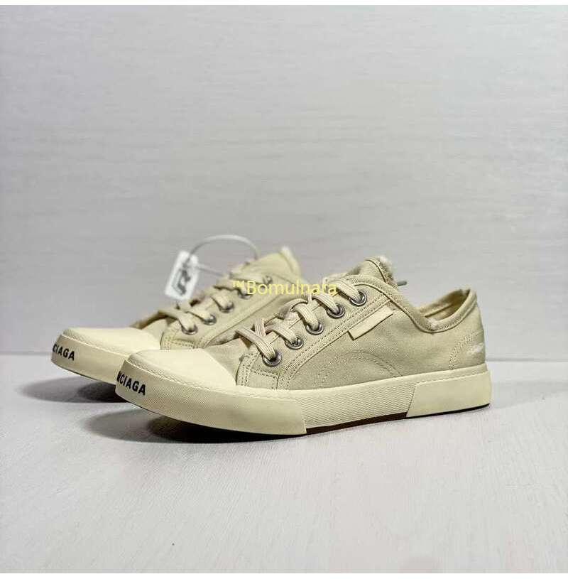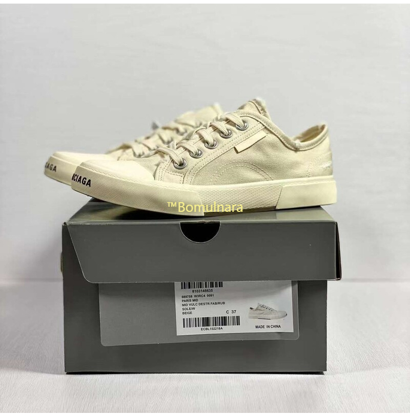 BALENCIAGA-688754 발렌시아가 화이트 디스트로이드 코튼 앤 화이트 러버 Paris Low Top 스니커즈