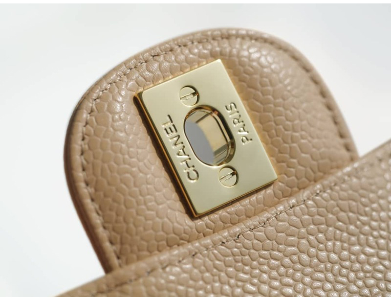 베이지 금장 로고 캐비어 클래식 스몰 백입니다.