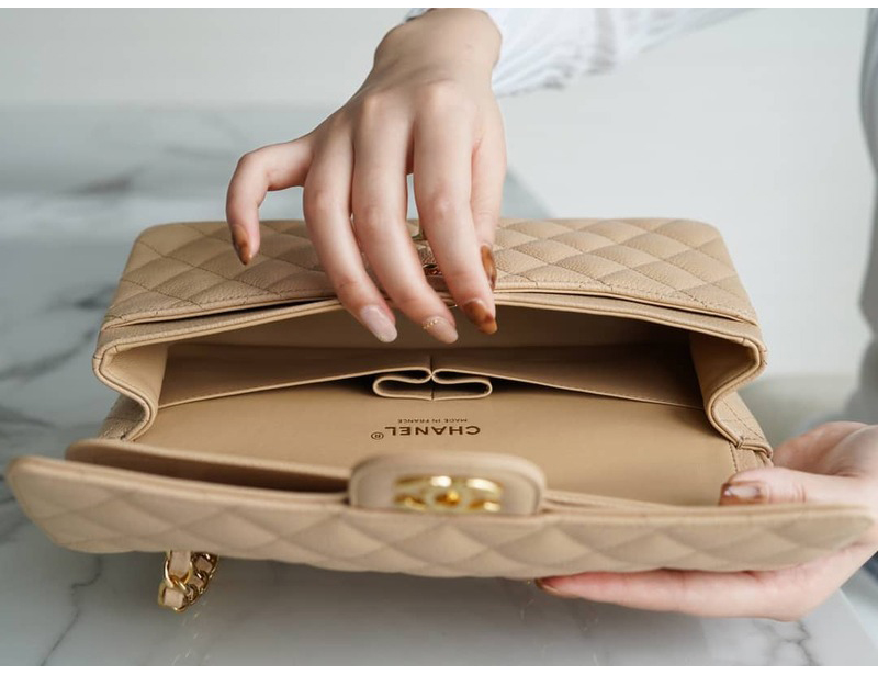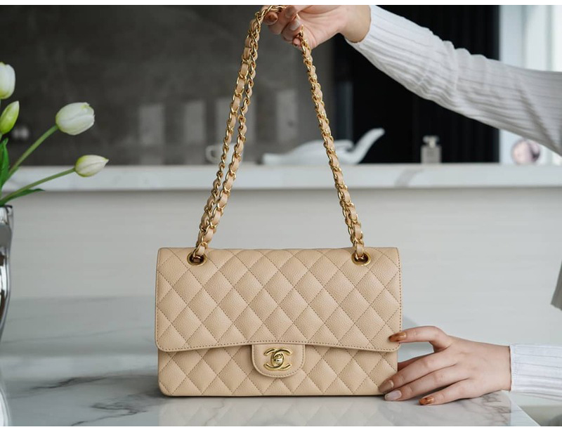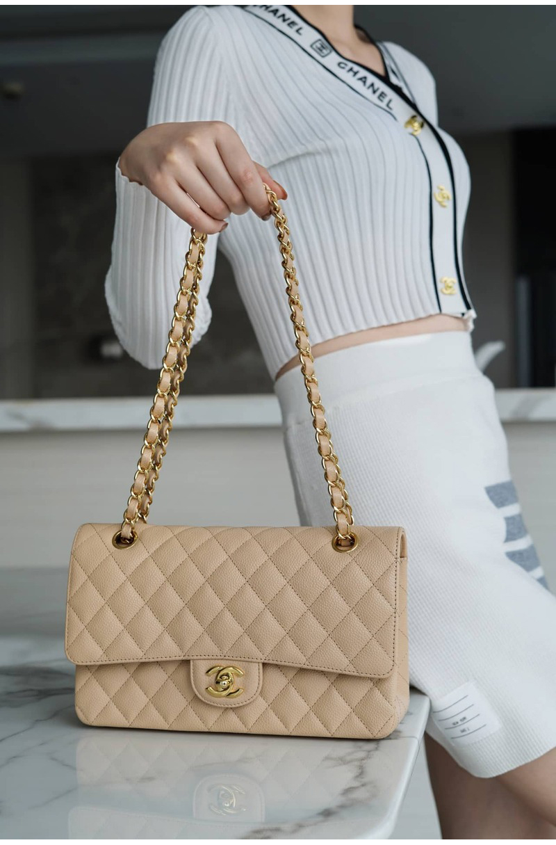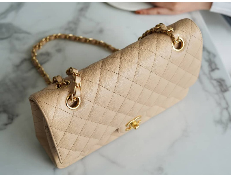 CHANEL-A01113 샤넬 클래식 베이지 캐비어 골드
