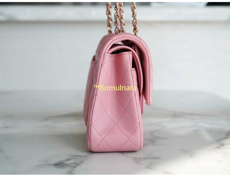 핑크 램스킨 골드 클래식 스몰 백입니다.