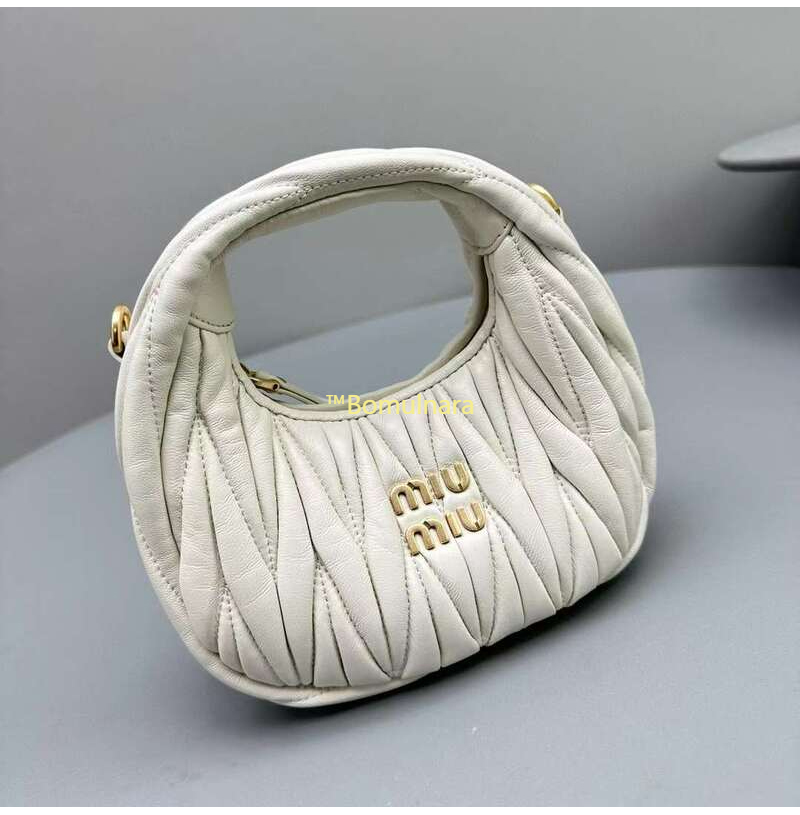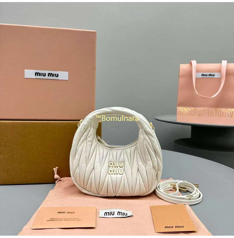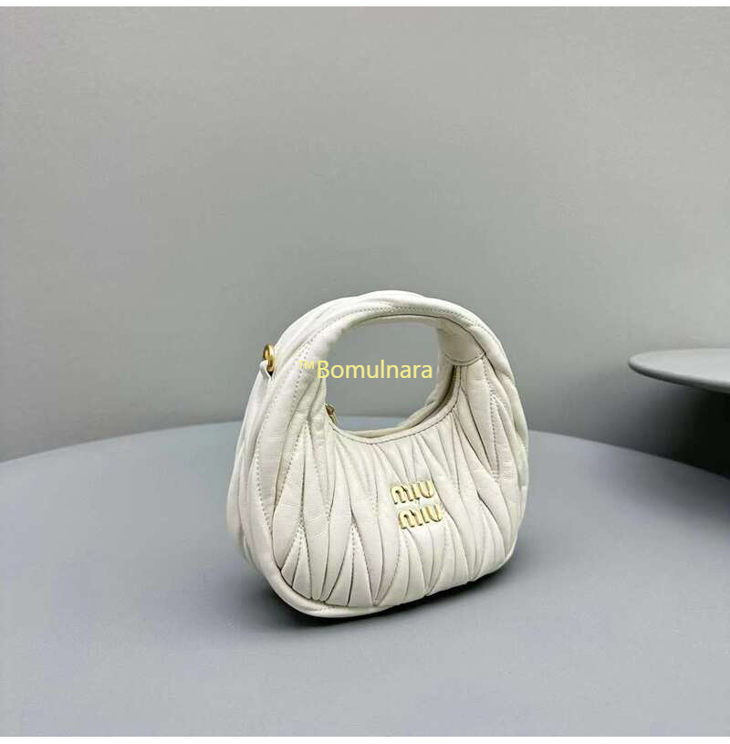 [스페셜오더]MIUMIU-5BP078 미우미우 화이트 완더 마테라쎄 나파 가죽 호보 미니 숄더백