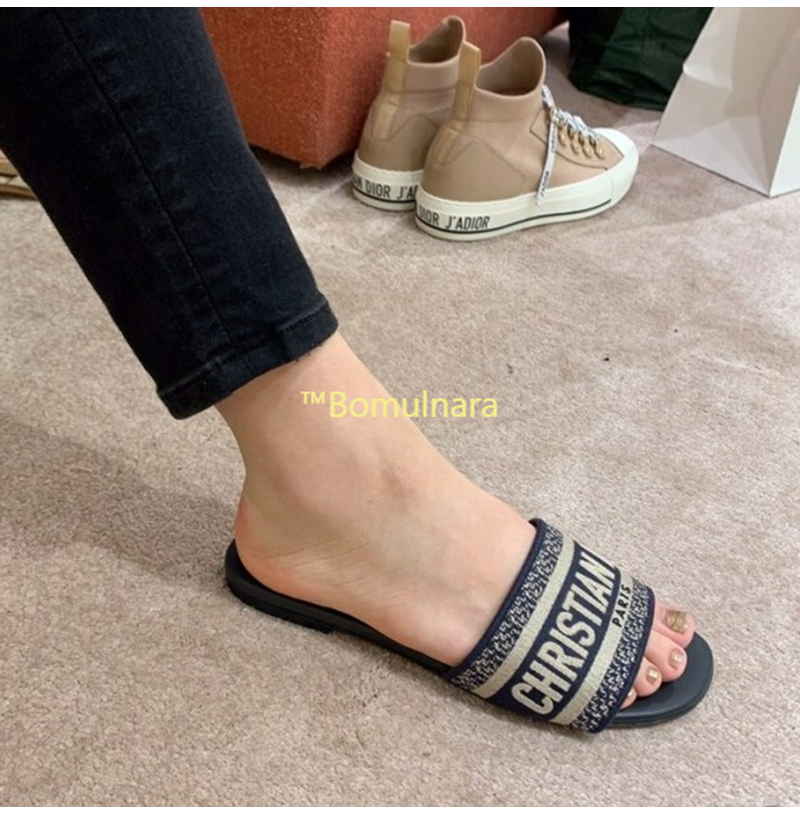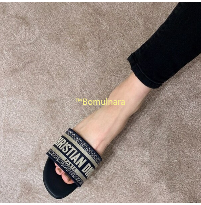DIOR-KCQ166 디올 딥 블루 자수 코튼 DWAY 뮬 슬리퍼