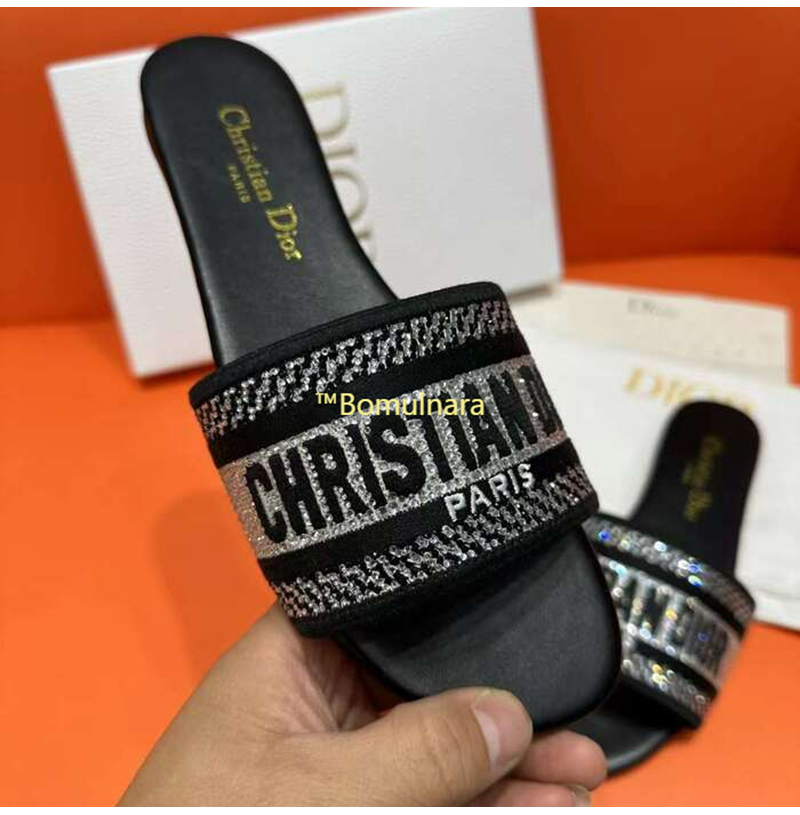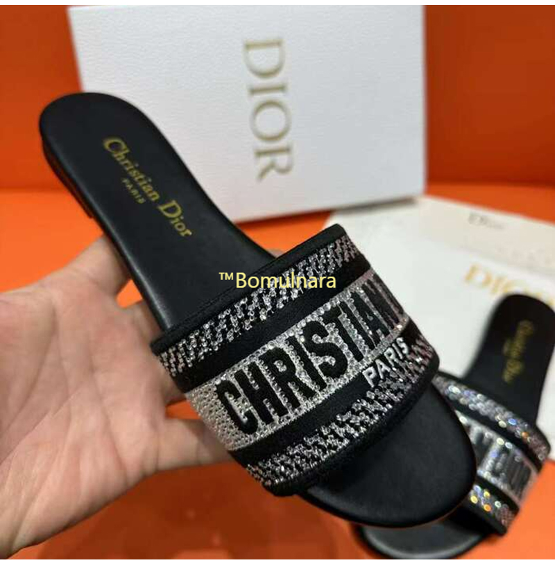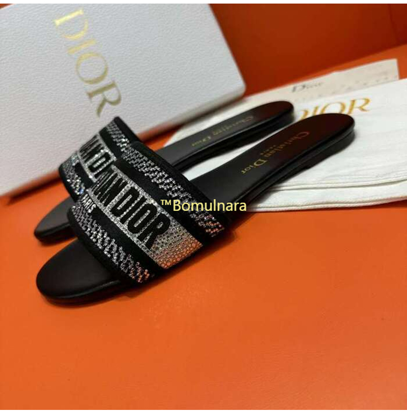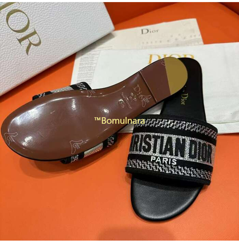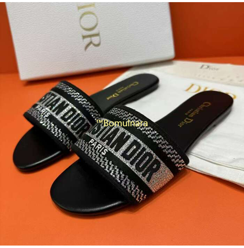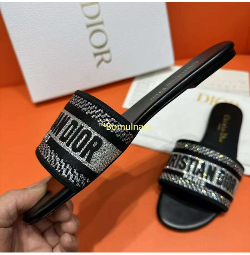 DIOR-KCQ166 디올 딥 블루 자수 코튼 DWAY 뮬