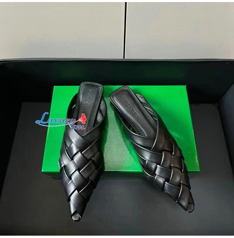 BOTTEGA VENETA-739891 보테가 베네타 블랙 램스킨 알피 슬리퍼 여성용