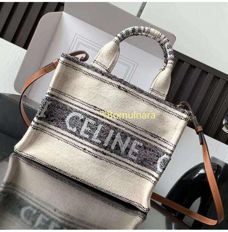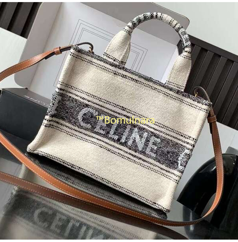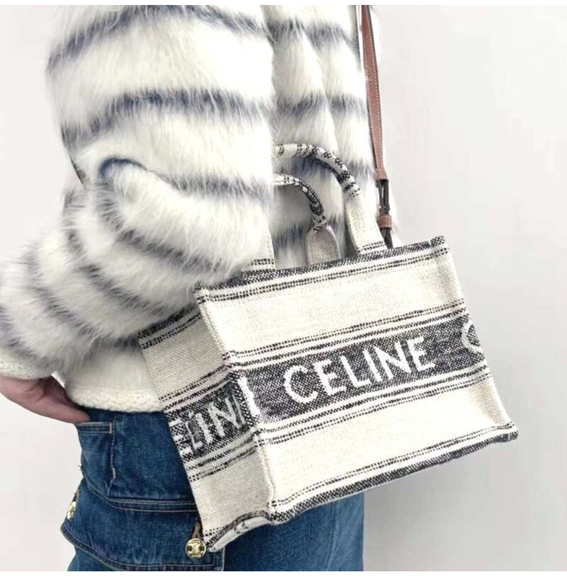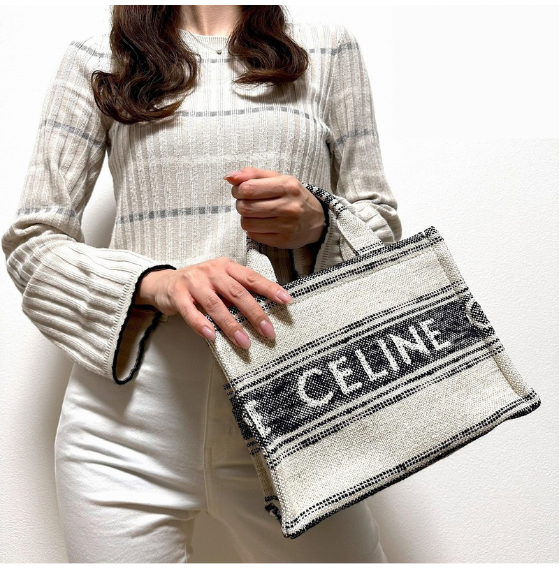 [스페셜오더]CELINE-199162 셀린느 화이트/블랙 타이스 스트라이프 텍스타일 스몰 카바스 백