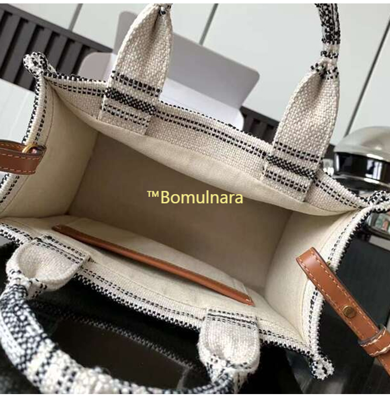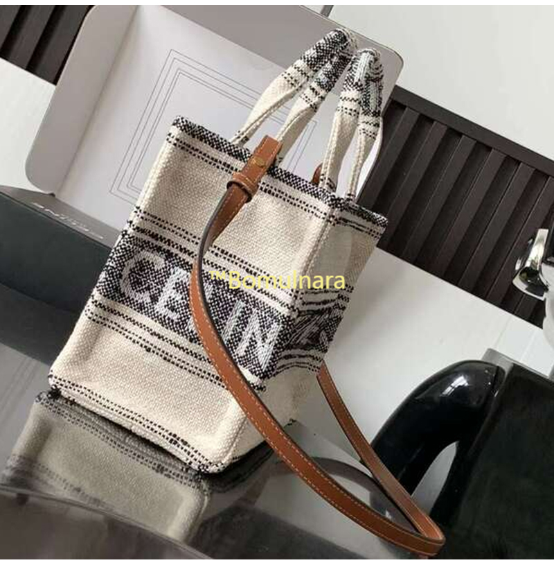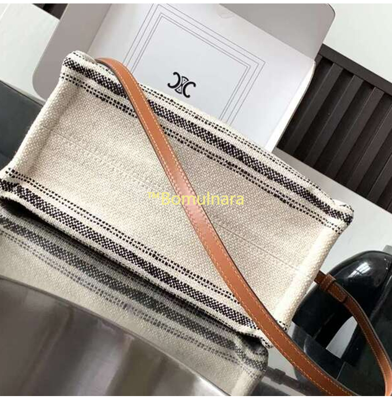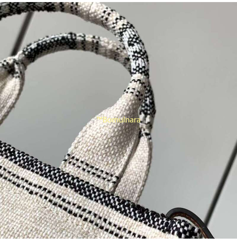 스트라이프 텍스타일 스몰 카바스 백