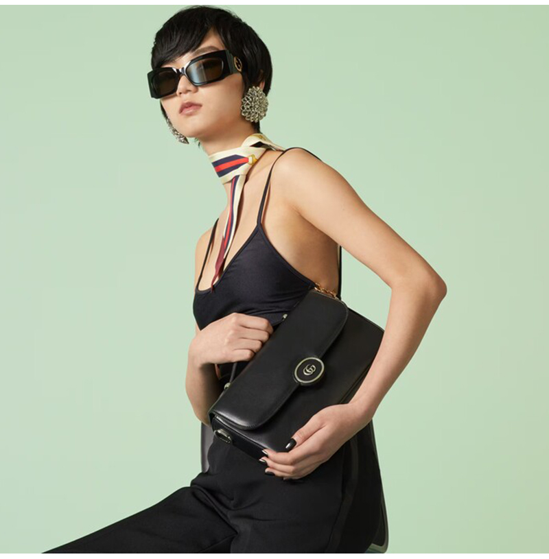 미니 버전의 더블 G 엠블럼으로 장식한 블랙