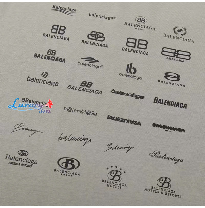 BALENCIAGA-05247 발렌시아가 아이보리 프린트 장식 티셔츠 남성용