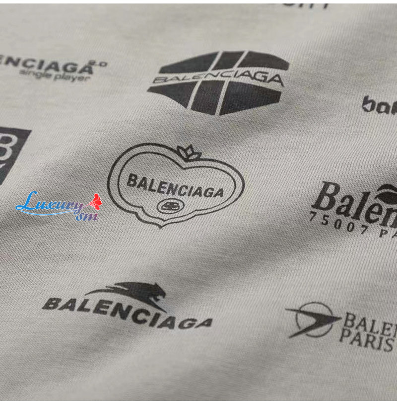 BALENCIAGA-05246 발렌시아가 그레이 프린트 장식 티셔츠 남성용