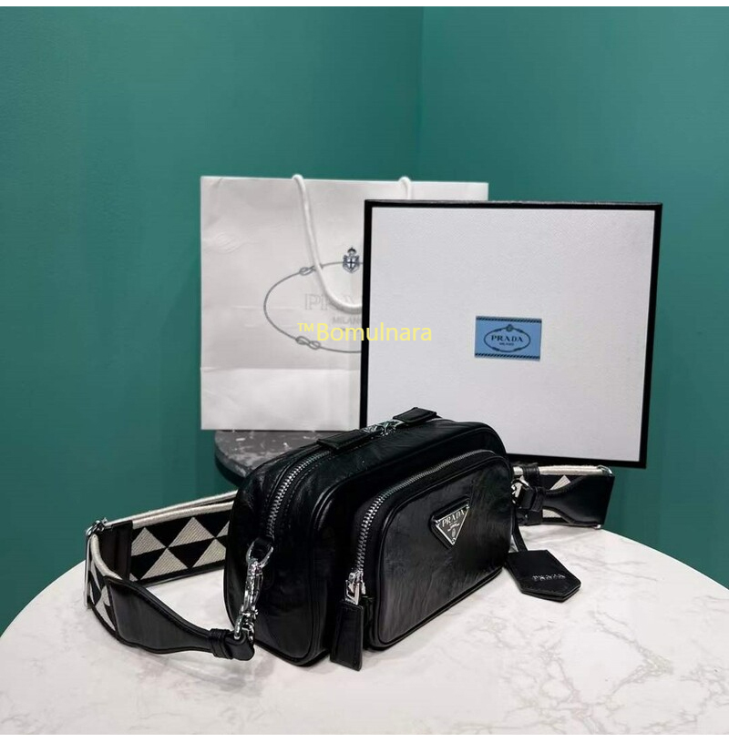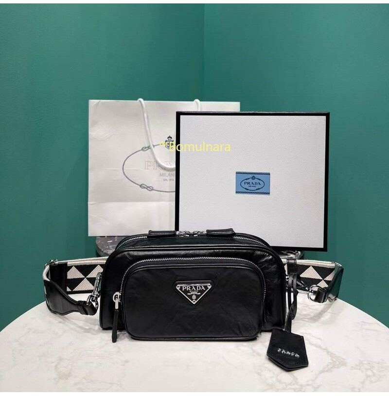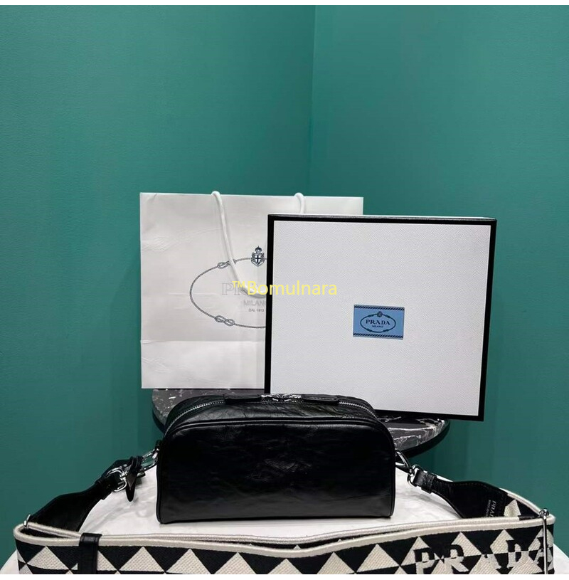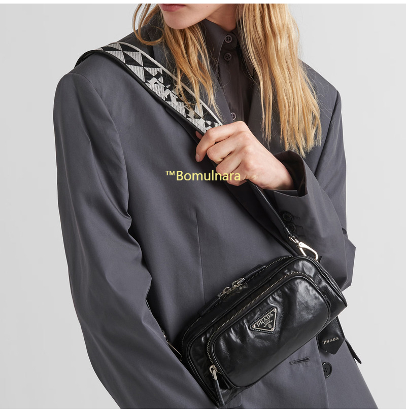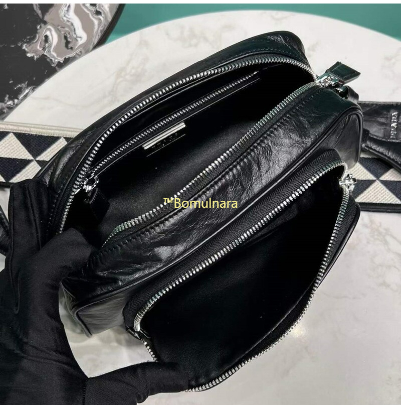 [스페셜오더]PRADA-1BH198 프라다 블랙 앤티크 나파 가죽 멀티포켓 로고 프린트 숄더스트랩 백