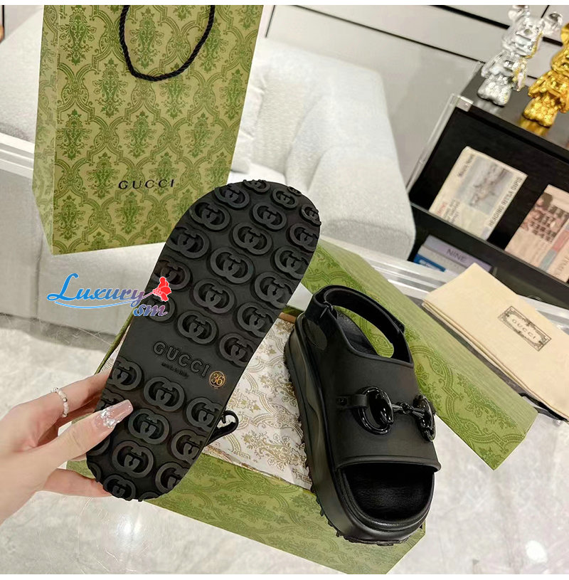 GUCCI-742435 1000 구찌 화이트 홀스빗 플랫폼 샌들 여성용