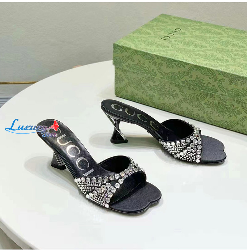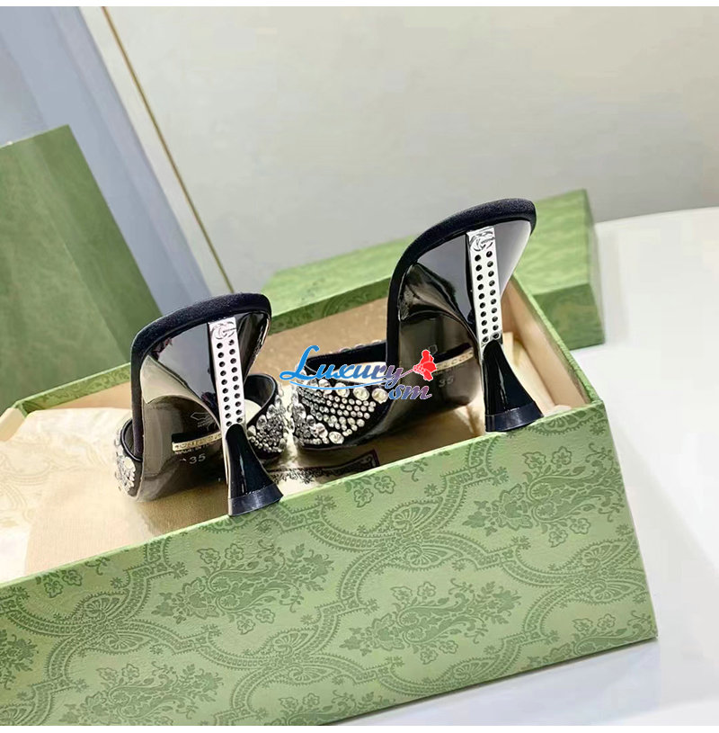 GUCCI-749663 1000 구찌 블랙 크리스털 슬라이드 샌들