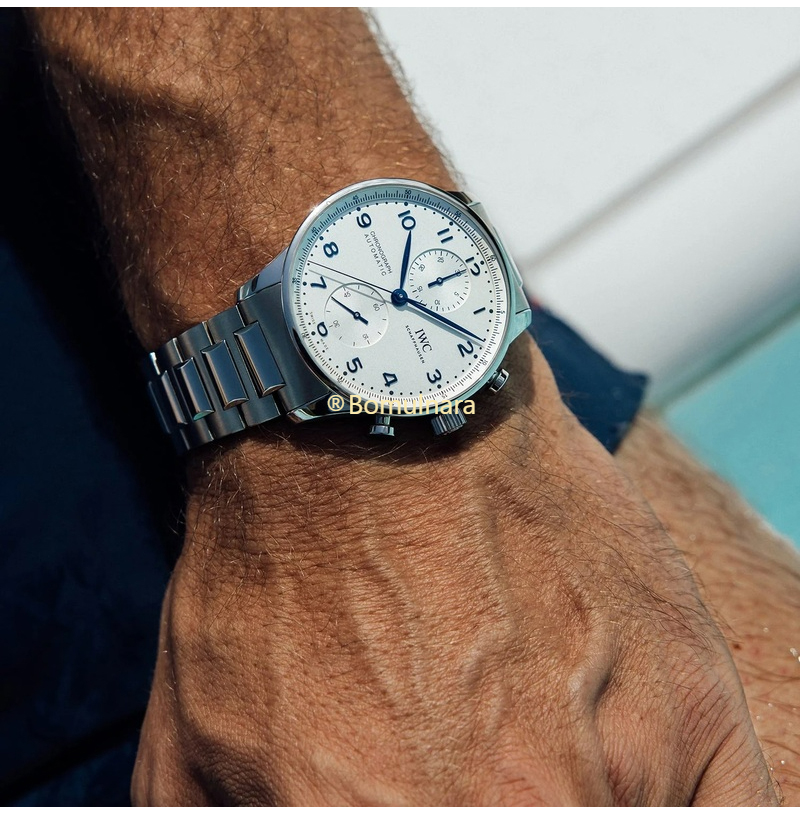 IWC 포르투기저 크로노그래프 스틸 화이트 다이얼