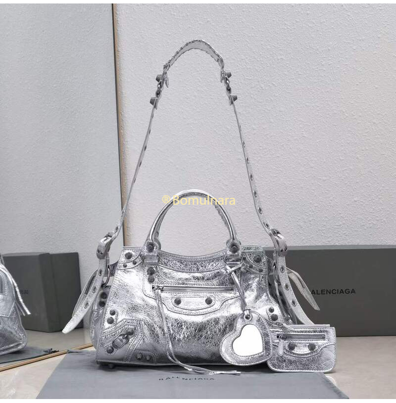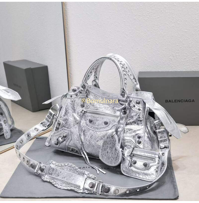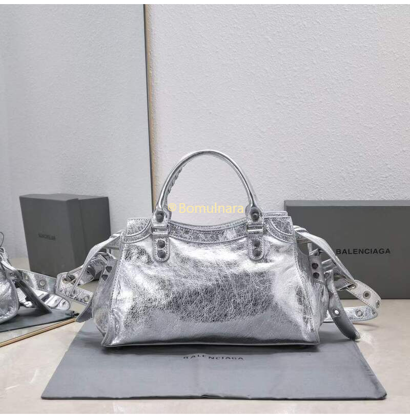 [스페셜오더]BALENCIAGA-736046 발렌시아가 메탈릭 실버 하드웨어 Neo Cagole City 스몰 핸드백 33CM