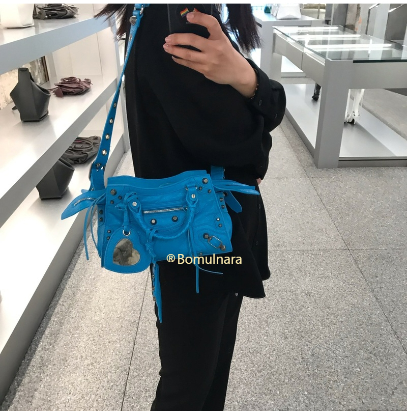 [스페셜오더]BALENCIAGA-700940 발렌시아가 블루 데님 라인스톤 NEO CAGOLE XS 핸드백 가격 : 400,000원