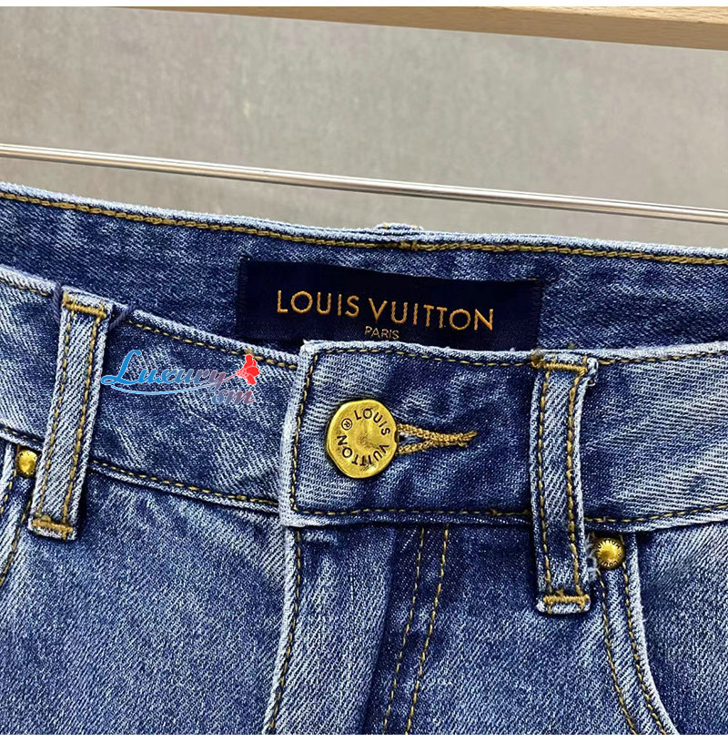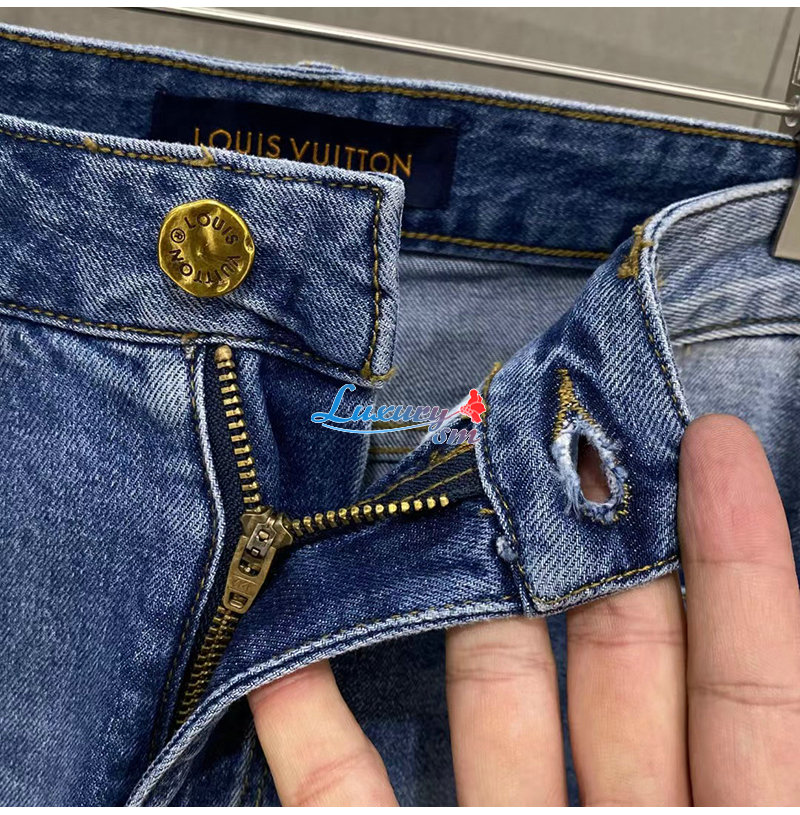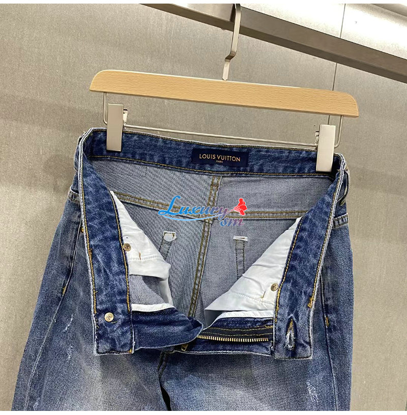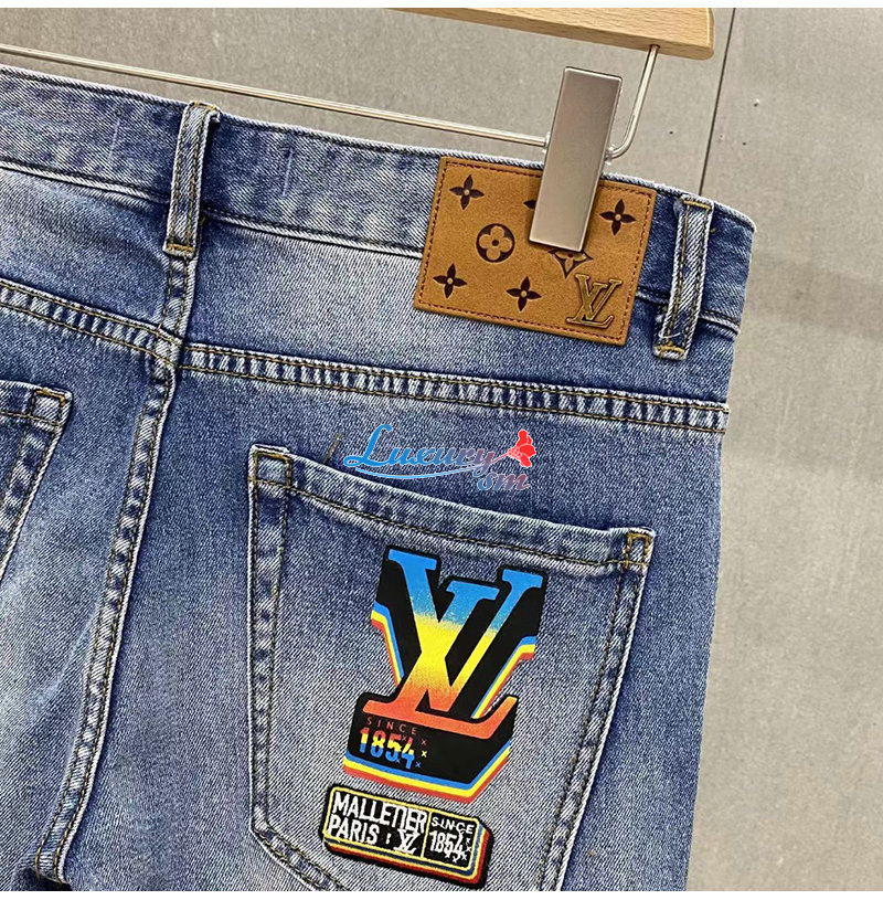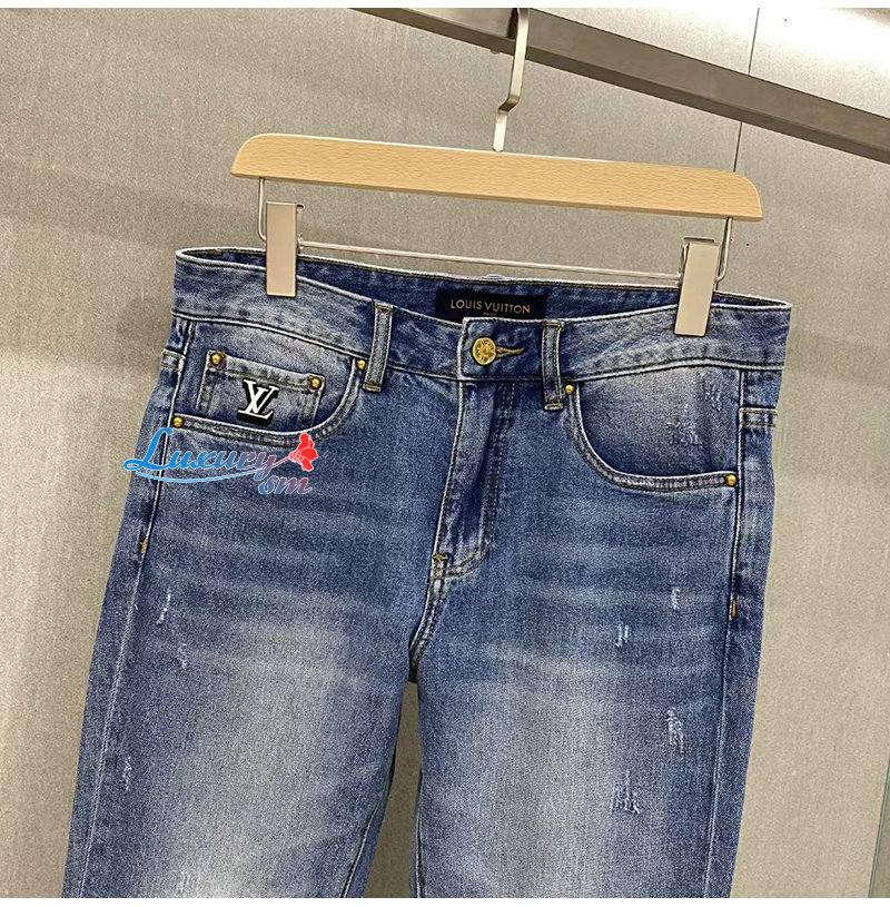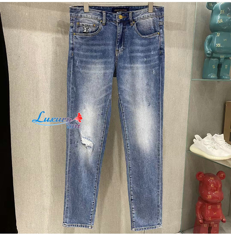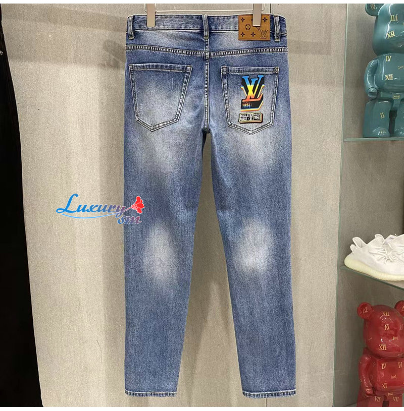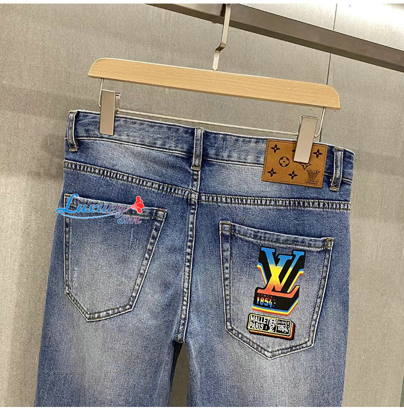 LOUIS VUITTON-06168 루이비통 블루 LV 시그니처 프린트 장식 청바지 남성용