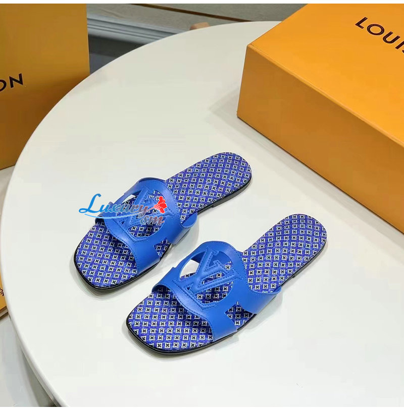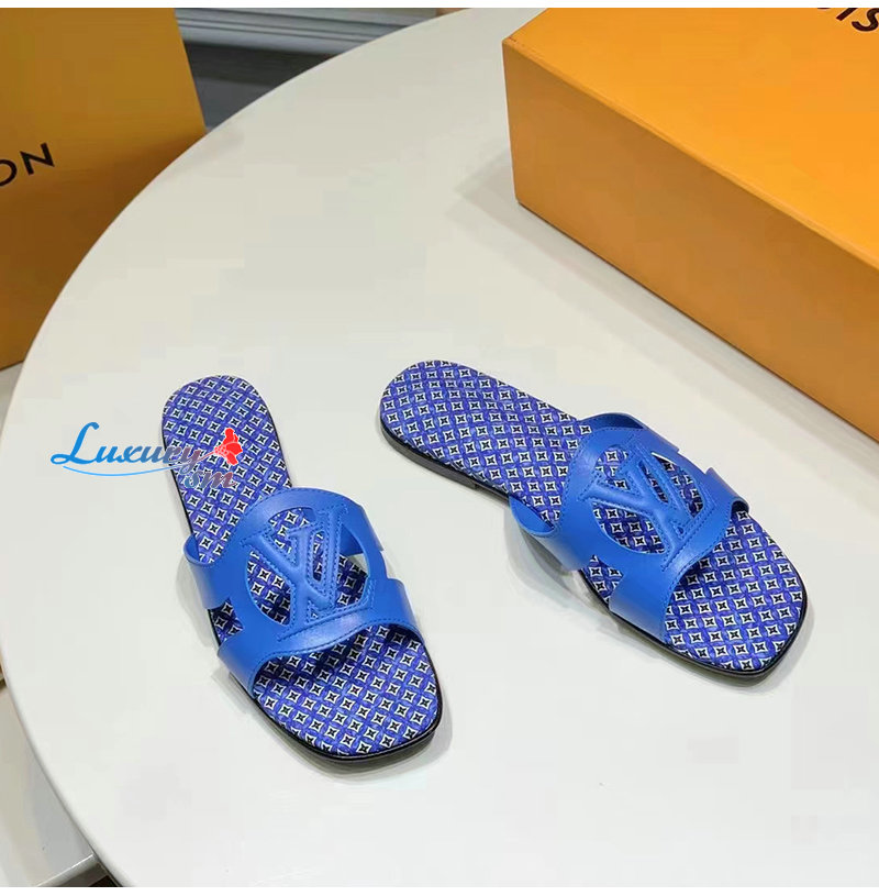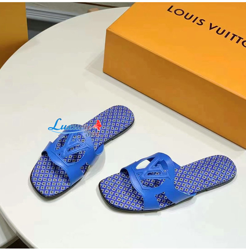 LOUIS VUITTON-1ABU3M 루이비통 블루 LV 이솔라 플랫 뮬 여성용