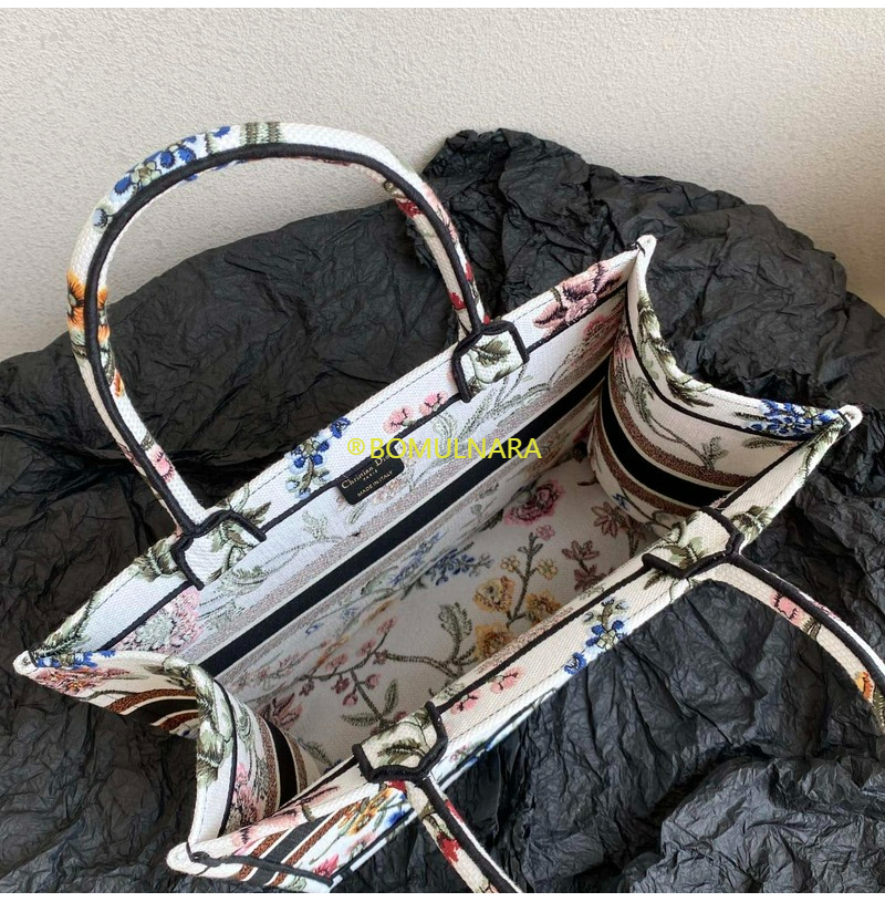 [스페셜오더]DIOR-M1296 디올 화이트 멀티 컬러 Dior Petites Fleurs 자수 BOOK TOTE 미디엄 백 36CM