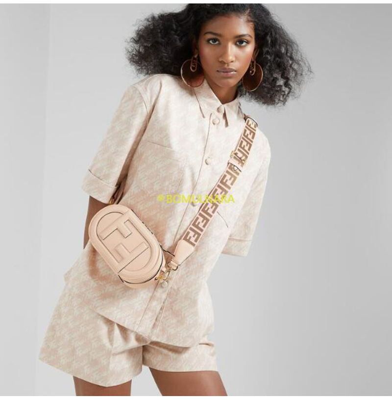 브라운 FF 모티프와 핑크 컬러 가죽 디테일