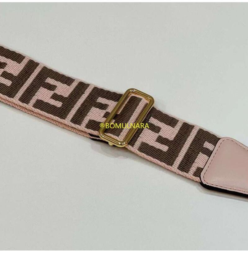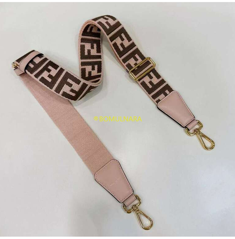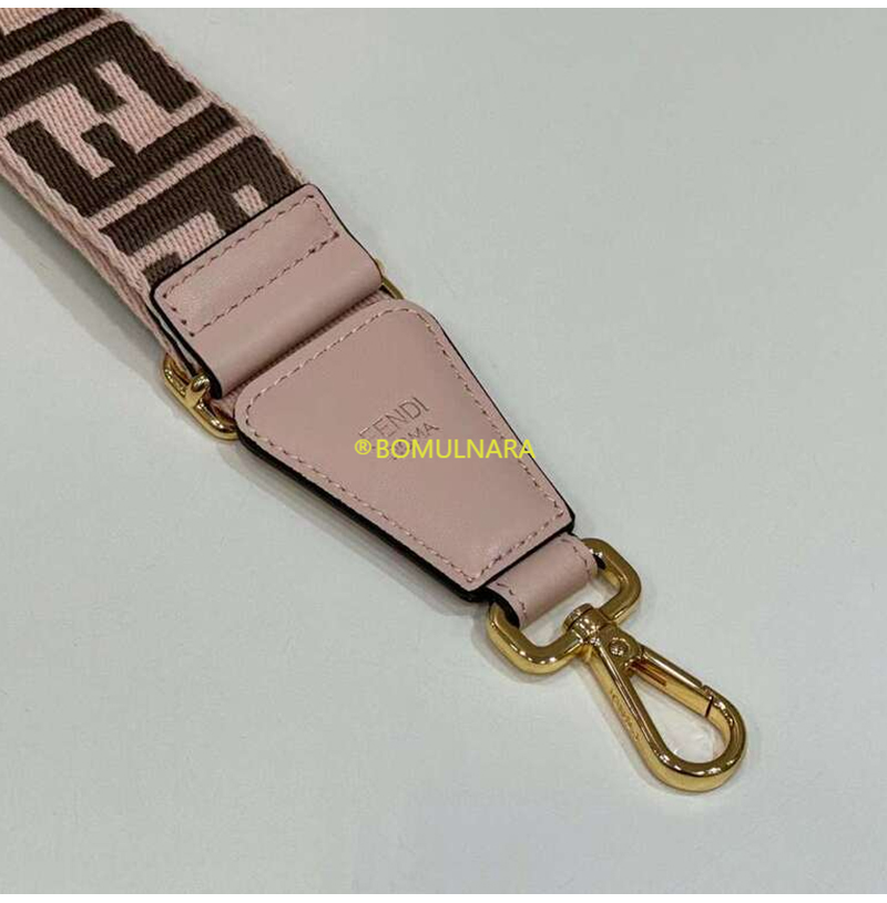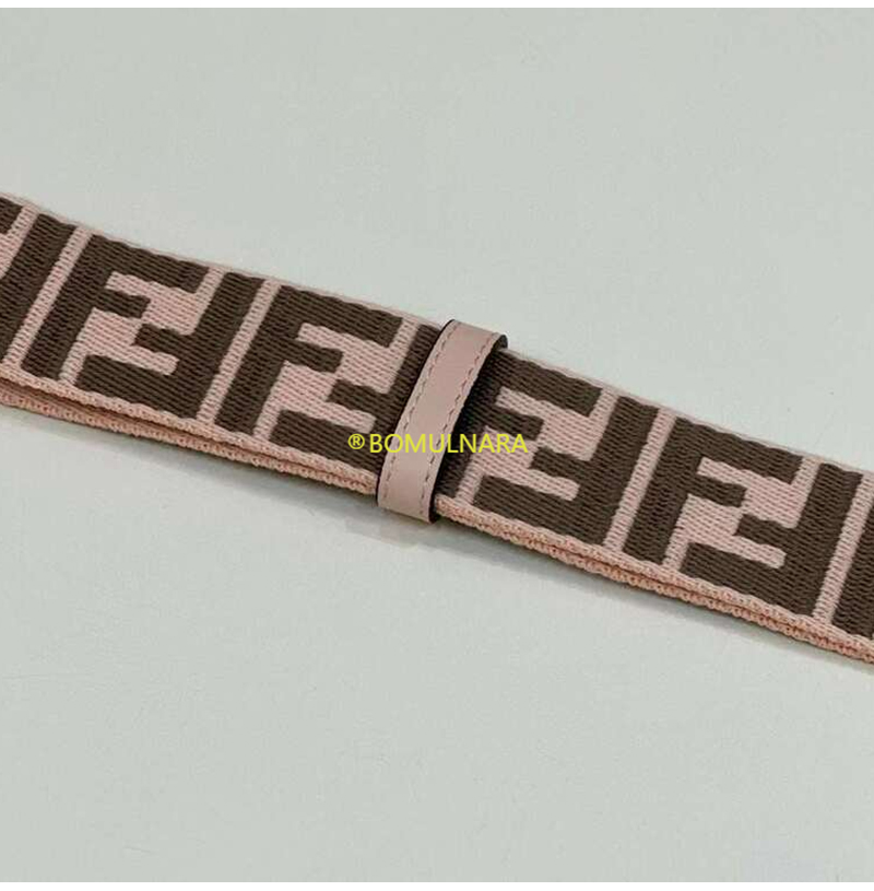 FENDI-8AV386 펜디 핑크/브라운 FF 모티프 리본 숄더 스트랩 미니 스트랩 유