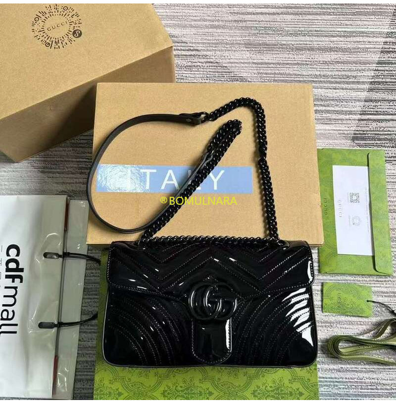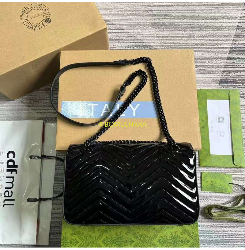 [스페셜오더]GUCCI-443497 1000 구찌 블랙 페이턴트 GG 마몽 마틀라세 스몰 숄더백