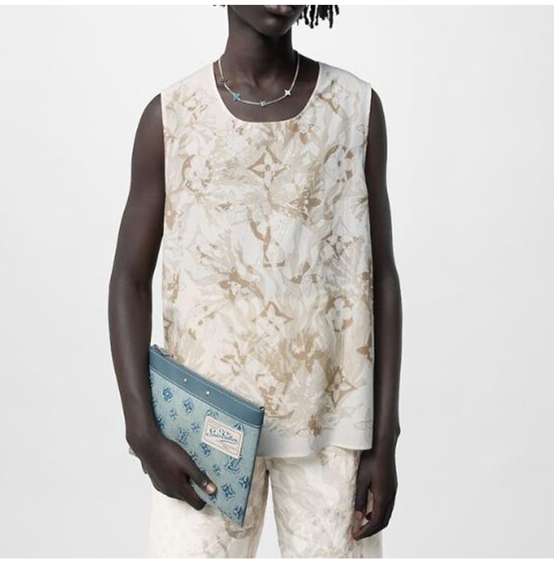효과를 준 모노그램 워시드 데님 캔버스 소재의