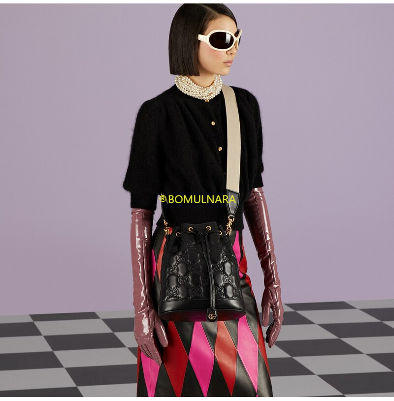 [스페셜오더]GUCCI-732448 1046 구찌 블랙 GG 마틀라세 레더 버킷백