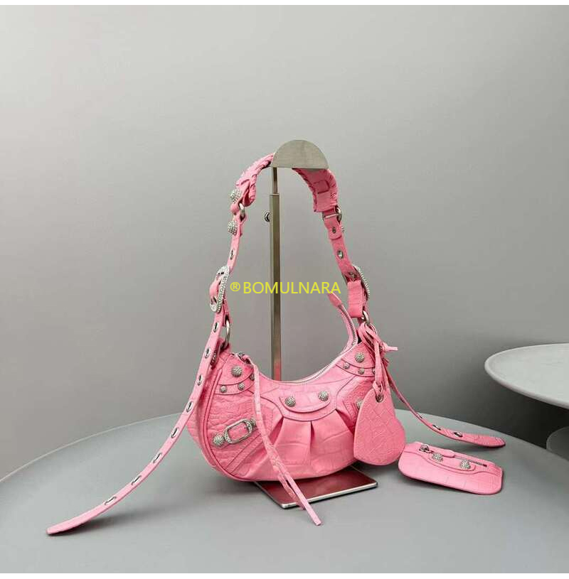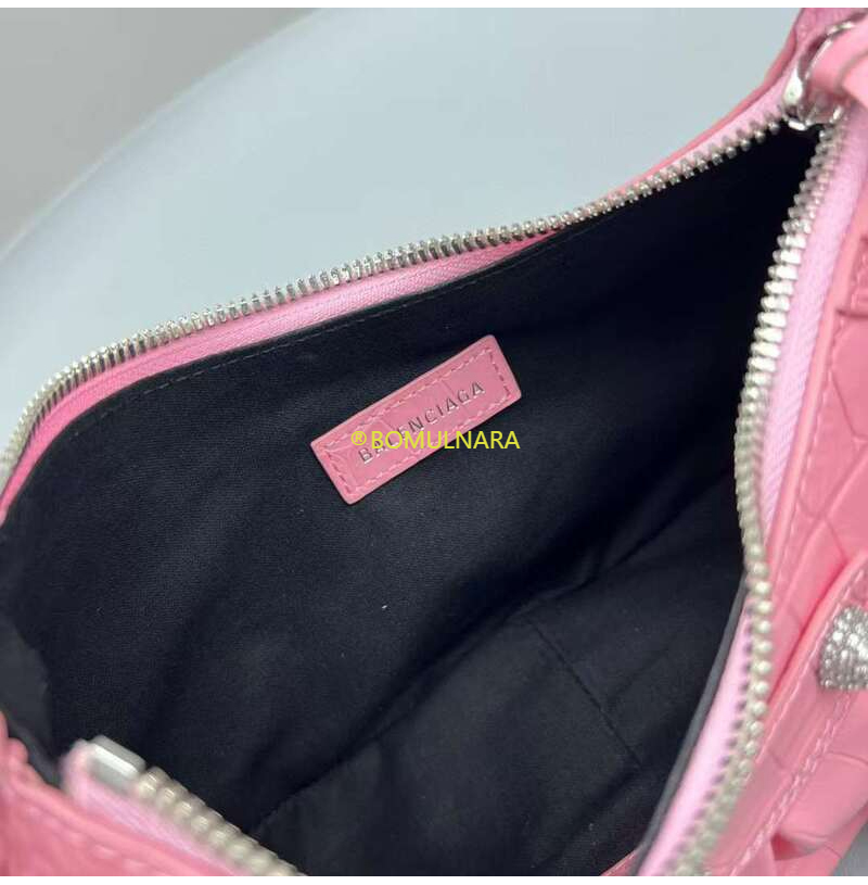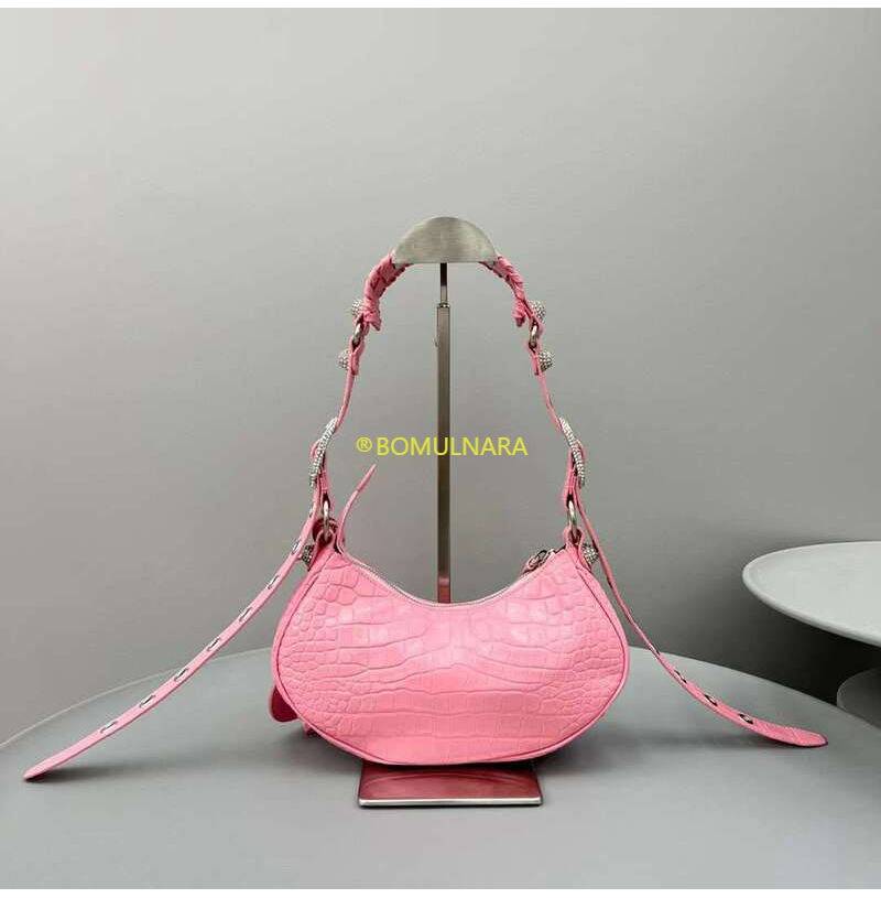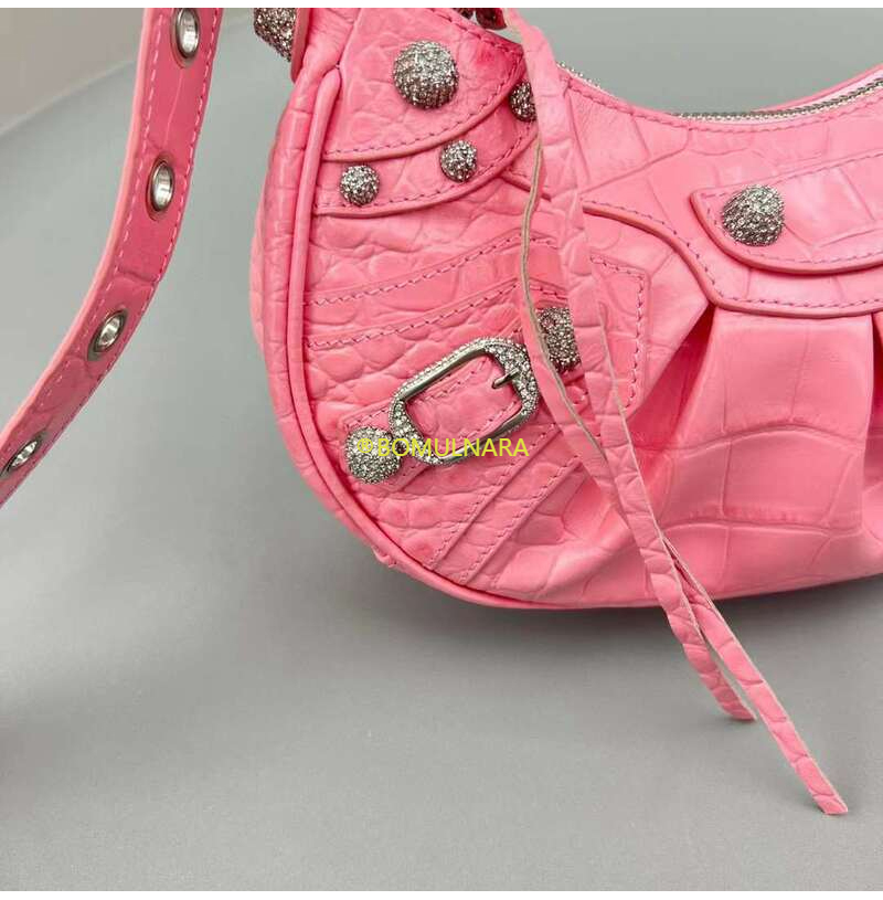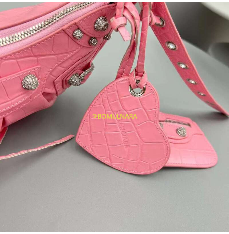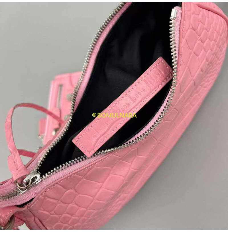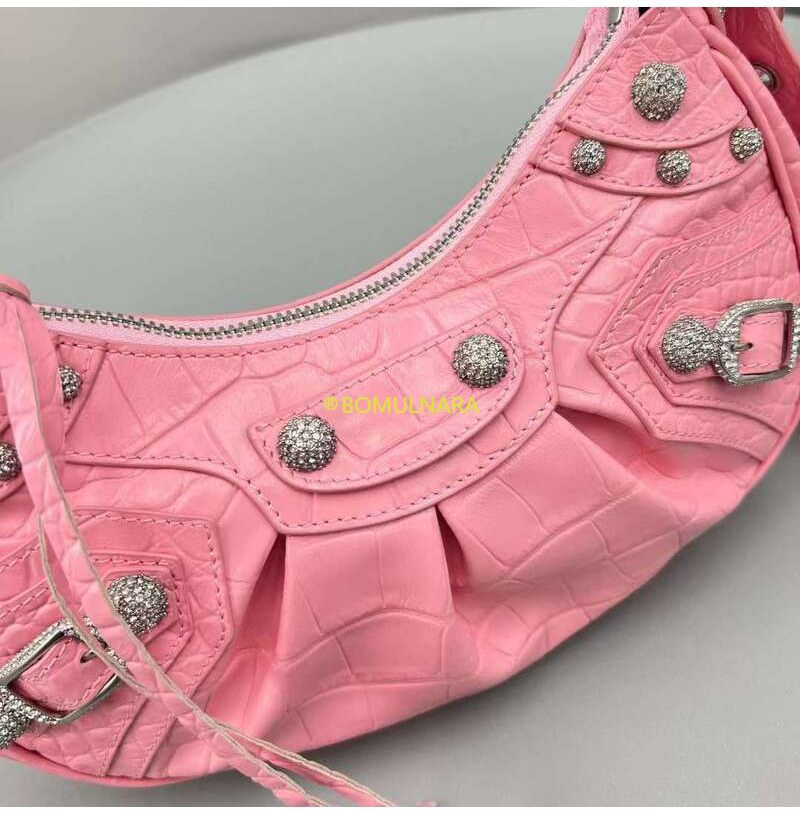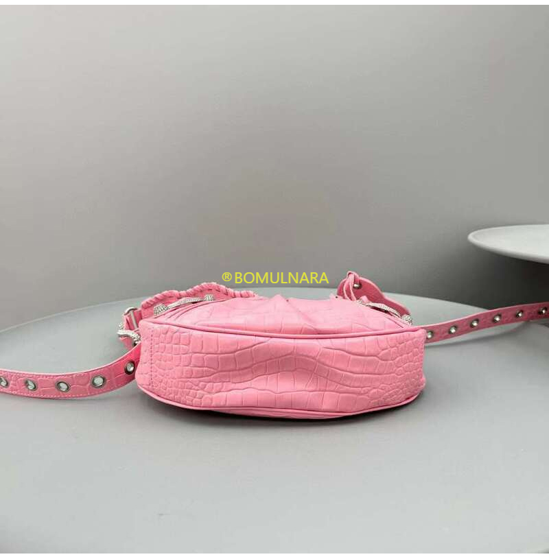 [스페셜오더]BALENCIAGA-671309 발렌시아가 핑크 크로커다일 엠보싱 라인스톤 LE CAGOLE XS 숄더 백
