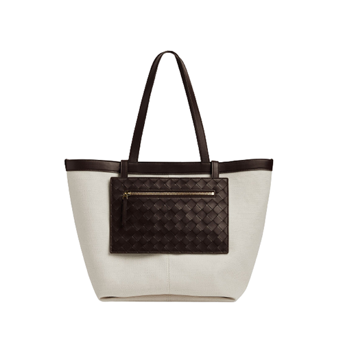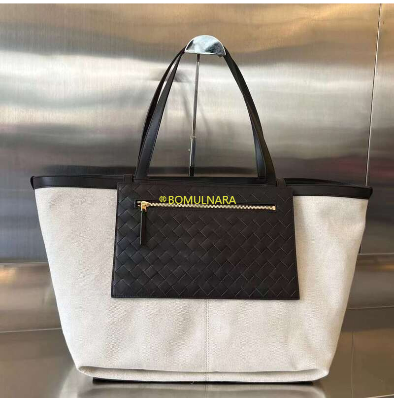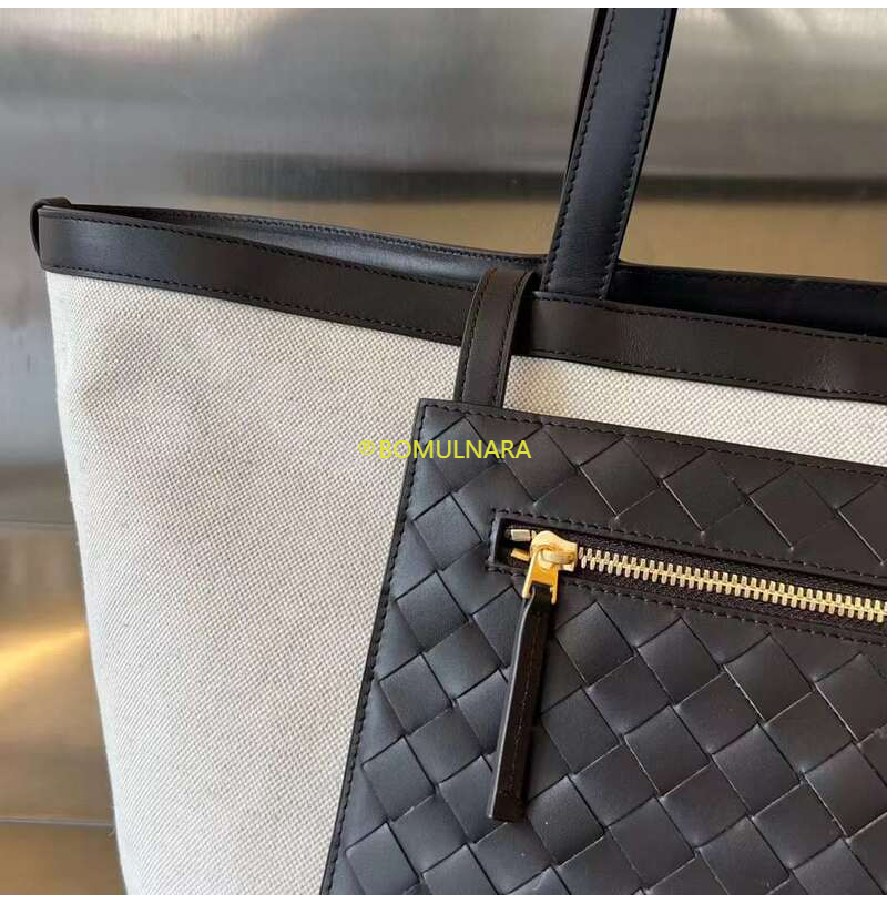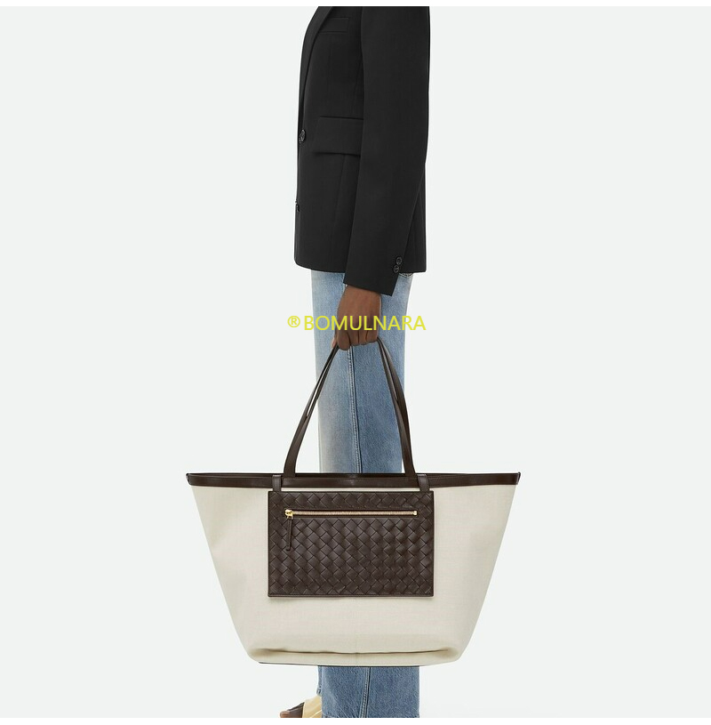 [스페셜오더]BOTTEGA VENETA-754914 보테가 베네타 내추럴/폰단트 캔버스 플립 플랩 미디엄 토트 백 30CM