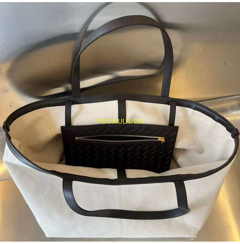 [스페셜오더]BOTTEGA VENETA-754915 보테가 베네타 내추럴/폰단트 캔버스 플립 플랩 라지 토트 백 38CM